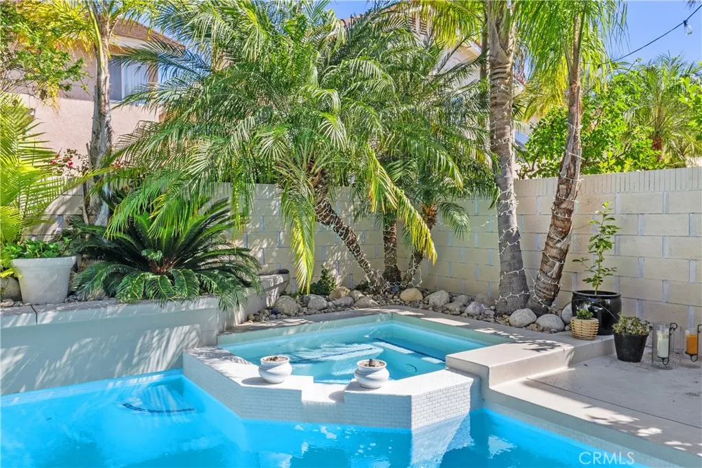 Step into your own tropical oasis! Beautifully upgraded inside and out, this stunning pool home is designed for both style and comfort. From the moment you arrive, the lush landscaping and inviting curb appeal set the tone. Step inside to soaring ceilings and expansive windows that fill the home with natural light, with tile floors throughout the main level and rich hardwood upstairs. The chefs kitchen features granite countertops and full height backsplash, stainless steel appliances, and upgraded flooring, opening seamlessly to the family room with a cozy fireplace. Large windows frame views of the tropical backyardyour own private retreat with a sparkling custom pool and spa, complete with waterfalls, mood lighting, outdoor shower, and updated pool equipment, perfect for relaxing evenings or lively gatherings. Upstairs, the primary suite offers a spacious retreat perfect for a home office or workout space, along with a spa-inspired bathroom featuring dual sinks, a soaking tub, walk-in shower, and a generous walk-in closet. Two additional bedrooms share an upgraded bath, and the upstairs laundry with washer and dryer adds convenience. Additional highlights include a two-car garage with extra storage (and potential space for a third car), water softener, and thoughtful upgrades throughout. Nestled in a small, gated community with a peaceful private park, this home is truly move-in ready. Your private oasis awaits!