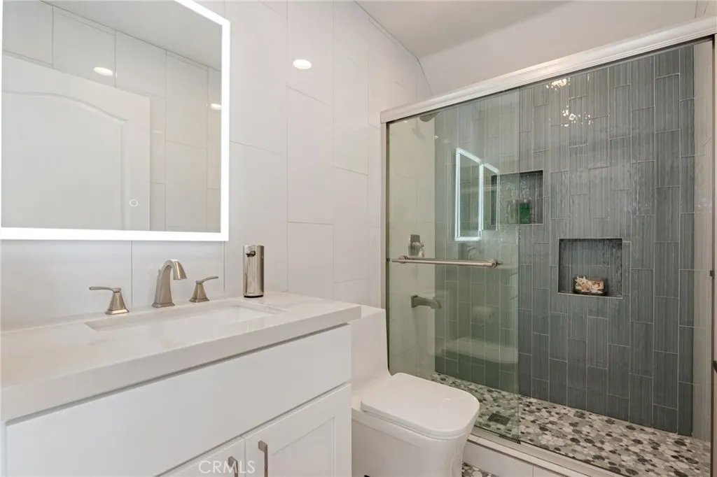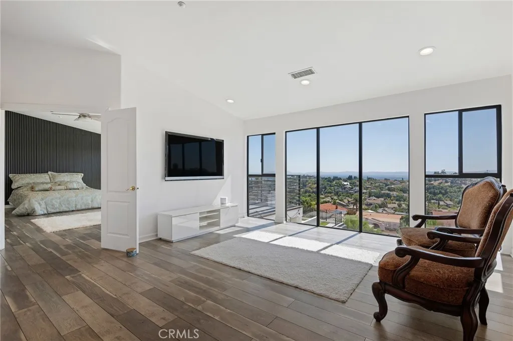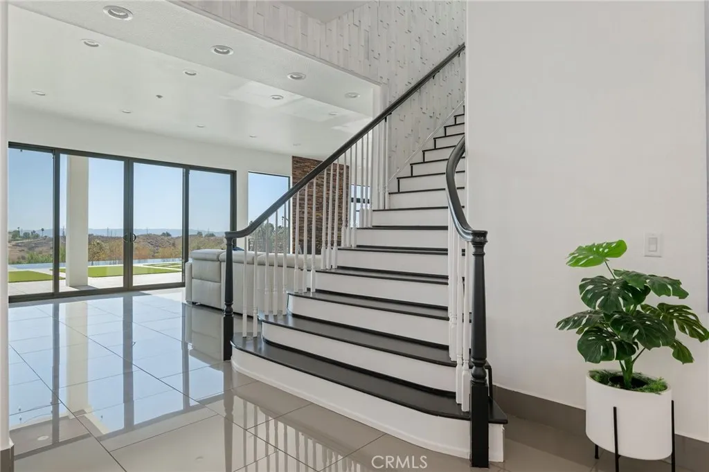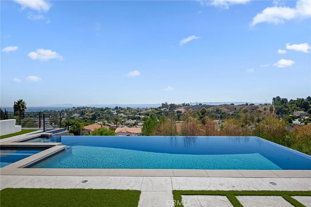 Masterpiece of Modern Luxury and Timeless Elegance! Step into a world of refined sophistication and breathtaking beauty at this exquisitely remodeled estate, perfectly situated to capture panoramic views of the San Fernando Valley and beyond. From the moment you enter through the custom front door, the grand entrance sets the tone for the luxury that awaits. The opulent living room greets you with custom stone flooring and a striking stone fireplace, offering a warm and elegant ambiance. Adjacent, the formal dining room seamlessly connects for effortless entertaining, making every gathering a special occasion. At the heart of the home lies a true chefs kitchen a culinary dream outfitted with top-of-the-line stainless steel appliances, double ovens, a built-in microwave, and quartz countertops with a waterfall edge. The oversized island is ideal for casual dining or hosting, while a walk-in pantry and window showcasing mountain and city light views complete the space. The spacious family room features soaring ceilings, recessed lighting, and a custom stone accent wall with a built-in fireplace. A sleek custom slider opens to your private backyard oasis, blurring the line between indoor and outdoor living. On the main level, a full bathroom with a custom shower adds both convenience and luxury. Ascend the custom wood staircase, accented by a stunning marble wall, to discover the primary suite a true sanctuary. Enjoy your own private balcony with sweeping, floor-to-ceiling views of the valley and city below. The spa-inspired en-suite bathroom has been fully reimagined with a