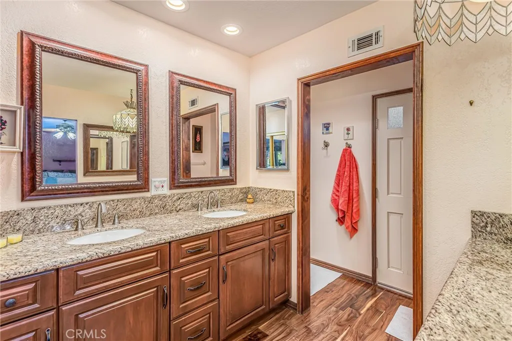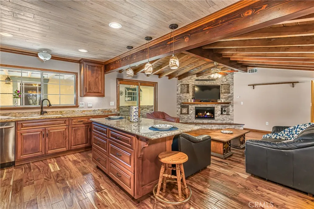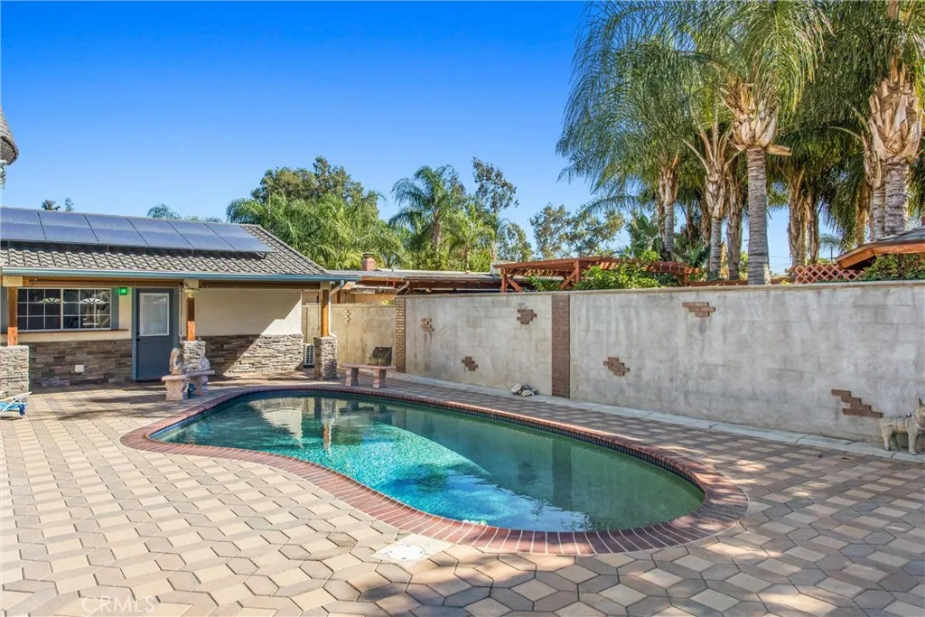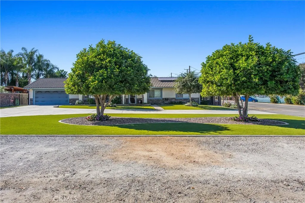 Custom Home and plenty more! Three Bedrooms, two bath with formal dining and living room plus family room with wood beams. Kitchen has upgraded cabinets with self-closing doors and drawers, granite counters with island and pendant lights. Lovely fireplace with tv mounted above. Home has Laminate wood floors and lots of extra display niches. Two car garage is very special with epoxy floors and hickory cabinets for storage. Alumawood patio between home and guest house of approximately 900 square feet. Guest home has bedroom, bar with display area, full bath, kitchen and great room. Outside is a pool to enjoy. The best is yet to come: A five-car garage/shop air conditioned is built on the rear of the lot with electric gate access and a tuff shed and another shed for storage. Fully landscaped with low maintenance yard which has a circle driveway in front, artificial grass, concrete and/or pavers everywhere. Stucco wall with brick columns and wrought iron fence on corner with stone faced on street side. Home is beautifully landscaped. ALL BUILDINGS HAVE METAL ROOF RECENTLY INSTALLED & HOME HAS 40 SOLAR PANELS ON ROOF PAID FOR.