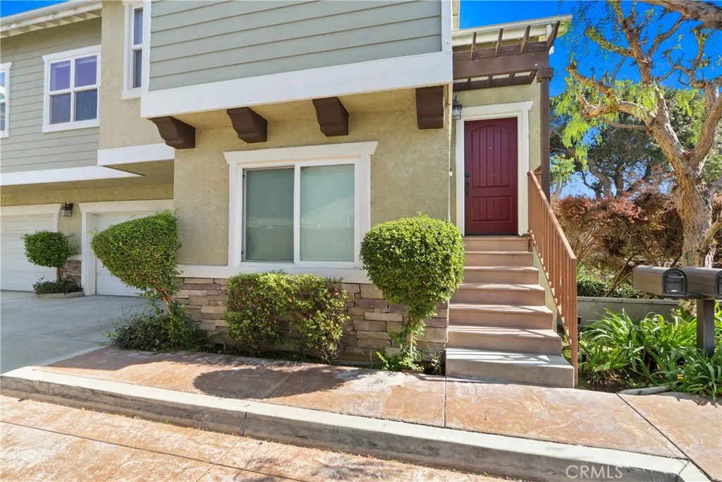 Fantastic End Unit Townhome in Los Alamitos. Beautifully remodeled two-level end unit townhome featuring 3 bedrooms and 2.5 bathrooms. The spacious layout offers comfort, privacy, and style. The master suite is located on the upper level with the main living area, which includes an open-concept design, vaulted ceilings, and a private balcony perfect for outdoor grilling and relaxation. Upgraded bathrooms include a luxurious master bath with a separate soaking tub. The home features newer laminate flooring throughout and a modern kitchen with quartz countertops. The property includes a two-car attached garage with EV charging capability. Located in a highly acclaimed school district and close to parks, shopping, and dining. This is the perfect home for families seeking quality education and a vibrant community. Dont miss this opportunity, schedule a showing today!