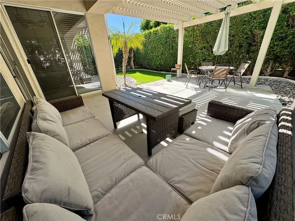 Relax and unwind in this calm, stylish retreat located on a quiet interior street within the prestigious Heritage Palms Golf Community, an active 55+ neighborhood in Indio, California. This home is perfect for seasonal stays, golf getaways, or simply enjoying peaceful desert living under sunny skies. The home features a private backyard, new flooring throughout, granite kitchen countertops, dual master vanity sinks with a separate tub and shower, ceiling fans, a laundry room, and a spacious two-car garage. It offers all the comforts of home in a serene and secure environment. This is a 30-day minimum vacation rental, and at least one renter must be 55 years or older. All utilities, including cable and HOA dues, are included. Access to community amenities is available for an additional HOA fee; please contact me for details. HOA approval is required before booking. The home is located within Heritage Palms, one of the Coachella Valleys premier 55+ active adult communities. Residents enjoy a world-class golf course, tennis and pickleball courts, indoor and outdoor pools, and a 20,000-square-foot clubhouse featuring a ballroom, grill room and bar, library, craft room, card rooms, and billiard room. Additional facilities include a fitness center, dance studio, and meeting spaces for social gatherings and community events. Heritage Palms offers easy access to excellent dining, shopping, and entertainment. Within walking or golf cart distance is Heritage Court, home to a Walmart Neighborhood Market, Walgreens, several restaurants, and other local conveniences. Major retailers suc