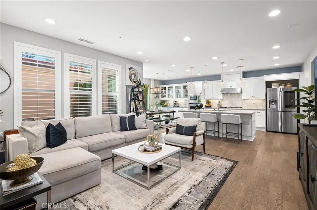 Welcome home to 137 Halo ***Condo Semi-Detached (only attached by garage)*** which is a PERFECT 4 bedroom Legado Residence artfully crafted by master builder Brookfield Homes in the newer phase of the highly desirable Portola Springs Village. This residence is nearly 2,300 sqft and has a premium back lot with extra space between neighbors, and a private backyard. Nestled against the Loma Ridge foothills of Irvine, you will find 137 Halo a masterful home that is appointed with luxurious upgrades such hardwood floors throughout the house downstairs for a lifestyle of durability comfort and ultra-plush carpeting upstairs. Use the downstairs 4th Bedroom for guests or office maintaining privacy with its own bathroom. Other upgrades include custom designer paint through out, recessed lighting, custom window coverings and plantation shutters accenting the windows in the living area and bedrooms. Prepare gourmet meals in the Chef inspired kitchen with sweeping center island and designer quartz counter tops, art-deco herringbone tiled backsplash, and KitchenAid stainless steel appliances. Venture to the private backyard patio to sit and talk about the days of summer past. Upstairs, you will find three spacious rooms with the Primary owner's bedroom offering an en-suite bathroom with separate soaking tub and upgraded tile flooring, tiled shower and custom art deco mirrors. The secondary bedrooms share a common hallway bathroom for added convenience, because who wants to clean another bathroom? Live in Luxury! Feeds into award winning schools of the Irvine Unified School District: Lom