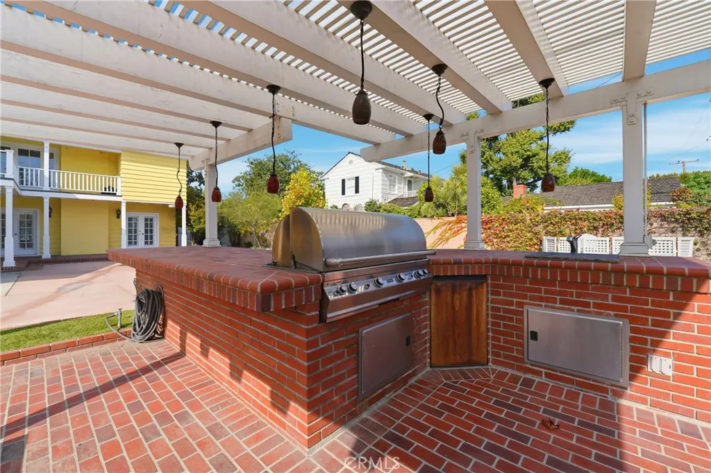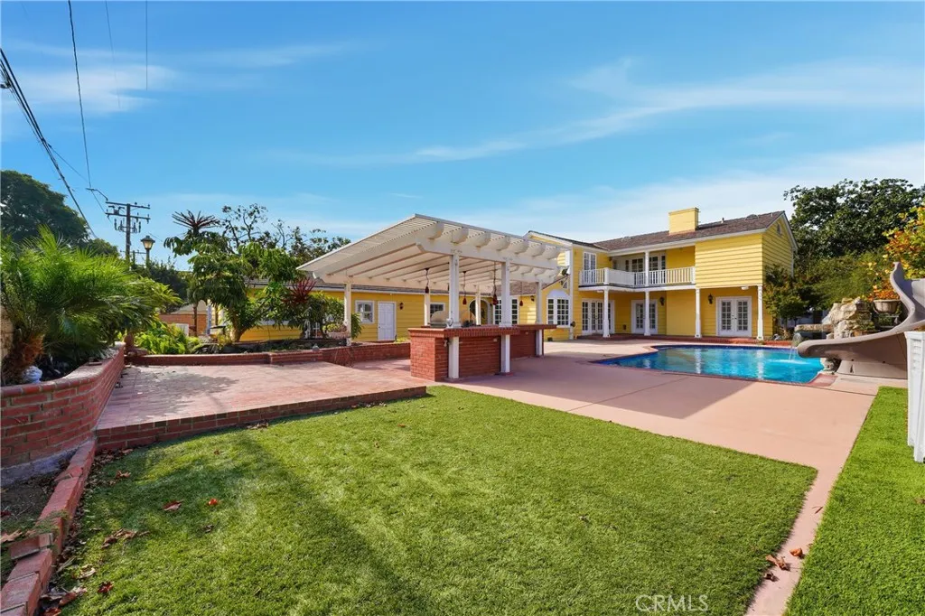 Welcome to 800 Santiago, situated on an 11,000 sq. ft. corner lot directly across from the golf course. This beautifully maintained home offers three bedrooms, three bathrooms, and multiple living spaces filled with natural light. The spacious living room features a gas fireplace and two sets of French doors leading to a private backyard oasis with a sparkling pool, waterslide, built-in barbecue, and tranquil koi pond. Enjoy a formal dining room with golf course views and a recently updated farmhouse-style kitchen that opens to a secondary family room with French doors to the yard. This home also features a spacious guest house complete with a kitchenette and private bathroom. Additional highlights include a three-car garage, dedicated laundry room, white picket-fenced front yard, and low-maintenance artificial turf. Located just minutes from the beach, Second Street, Cal State Long Beach, and easy access to the 405 and 22 freeways this home perfectly combines comfort, convenience, and coastal charm.