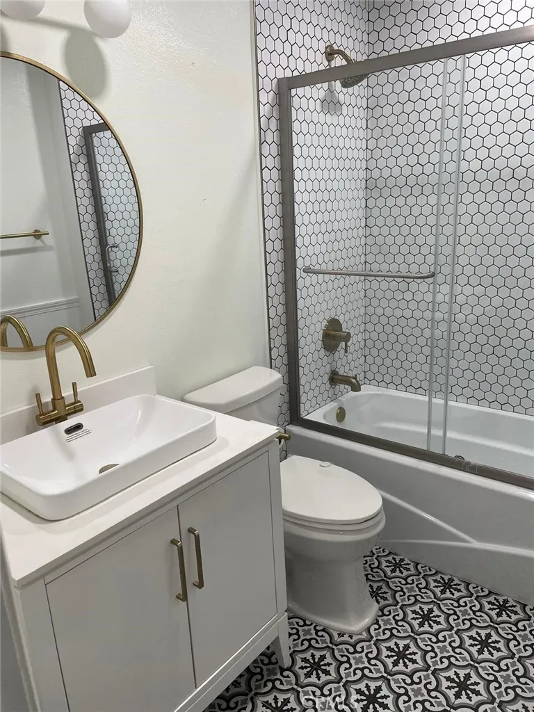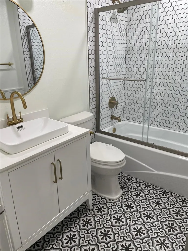 Totally remodeled condo at first floor with a lager Patio for relaxing. Custom designed bathrooms. All remodeled kitchen. Brand new Air conditioning. Custom made solid wood shade throughout the condo. Recessed lighting. Dimming lights throughout the condo. Huge wake-in storage closet. Very large patio for entertaining and relaxing has water hose. End unit is very close to the parking. One carport space and 1 parking spot in the uncovered/gated back lot. HOA dues include Water, trash, sewer, Internet, basic cable and EQ insurance. Complex has 3 Pools, 3 Spas and kids play area.