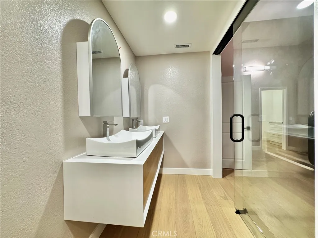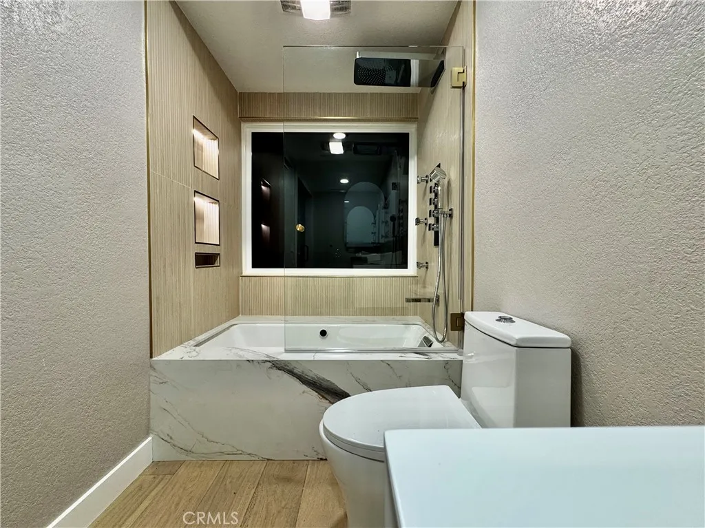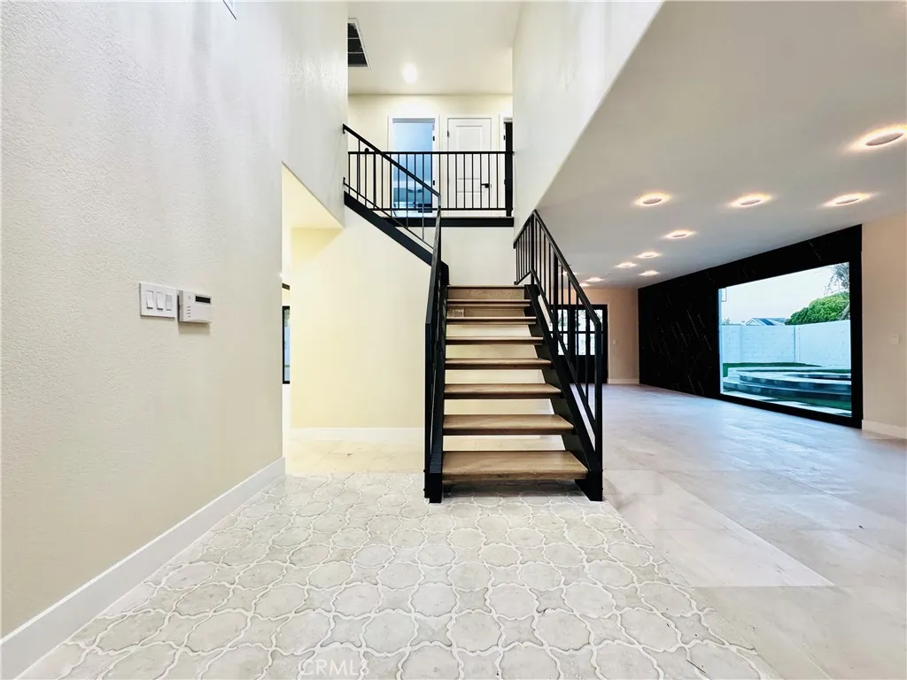 Step into an exquisitely remodeled home where no detail was overlooked. This exceptional two-story residence has been transformed inside and out with high-end finishes and thoughtful design in one of La Palmas most desirable neighborhoods. The gourmet kitchen features premium Jenn Air appliances and custom Koosah Pine cabinetry. The main level showcases elegant natural limestone flooring while the upper level offers engineered wood flooring, totaling approximately $40,000 in premium flooring. The primary bathroom is finished in honed marble for a spa-like experience. Outdoor living has been enhanced with synthetic turf in the rear yard, a brand-new in-ground hot tub with new equipment, and new hardscaping and concrete patios perfect for entertaining. The exterior features new stucco, fresh Dunn-Edwards paint, new doors and windows, and upgraded exterior lighting with high-end fixtures. Interior improvements include a new staircase banisters, all new interior and exterior doors, luxury spa inspired bathrooms, and picture worthy living spaces. Systems and infrastructure have been fully upgraded, including paid-off solar panels, new HVAC, new electrical, and updated irrigation and drainage systems. The front yard has been re-sodded with Marathon sod and high-end light fixtures enhance the interior throughout. This home has approximately $350,000 in premium upgrades, offering exceptional value for buyers seeking a turnkey residence with luxury finishes. Located near a trail just behind the property, residents can enjoy outdoor biking, walks, jogging, or quiet moments in nature.