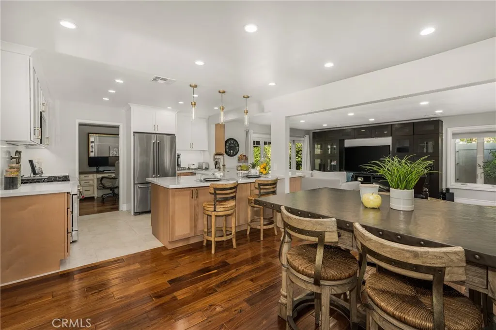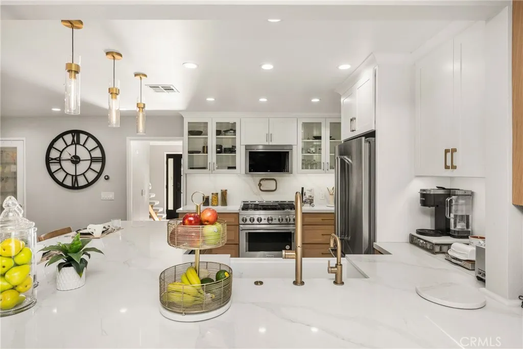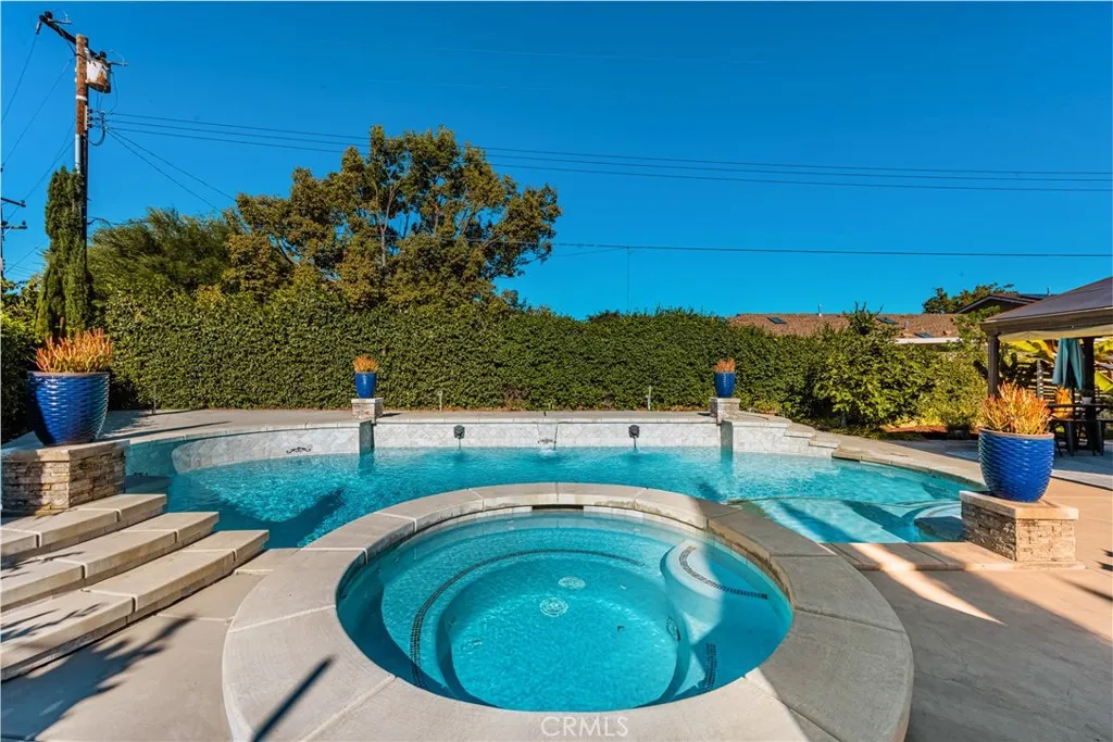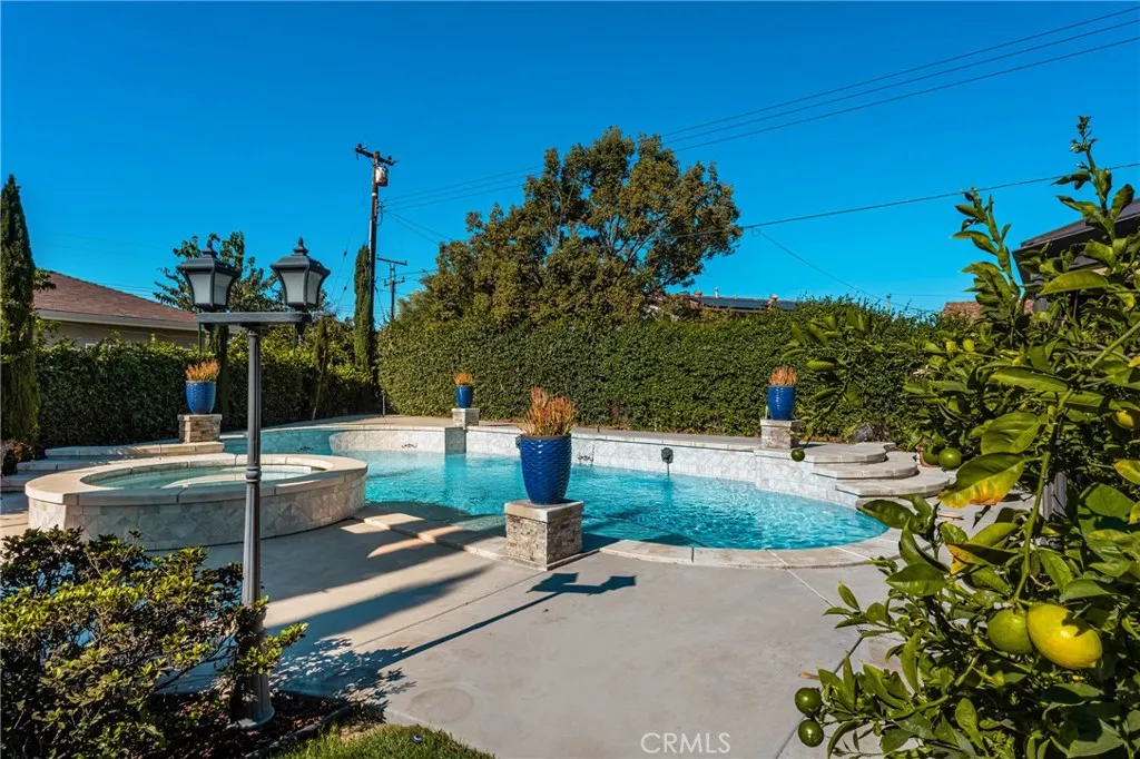 Welcome to this stunning European-inspired residence, offering timeless elegance and modern upgrades throughout. Situated on a large, beautifully landscaped lot, this approximately 2,100 sq. ft. home features 4 bedrooms and 3 bathroomsdesigned for both comfort and sophistication. From the moment you arrive, youll be captivated by the homes striking curb appeal, highlighted by a graceful S-shaped front wall with custom outward-swinging barn doors that create a grand and inviting entrance. Beyond the gates, lush greenery and vibrant gardens set the tone for the serene outdoor oasis that awaits. The property boasts a variety of fruit trees, including mature avocado, lemon, fig, mango, banana, and dragon fruitcreating a private garden paradise. The exterior is finished with durable 50-year Tex Cote paint, ensuring both beauty and long-lasting protection. Inside, youll find an inviting living area featuring gleaming wood flooring, dual-pane windows, and an elegant fireplace that anchors the space in warmth and style. The open layout flows seamlessly into a fully remodeled custom kitchen, complete with high-end finishes, modern appliances, and exquisite craftsmanship. Each remodeled bathroom reflects thoughtful design and luxurious comfort, evoking a spa-like ambiance. The primary suite is a tranquil retreat filled with natural light, luxurious flooring, and a beautifully updated en-suite bathroom. Additional bedrooms continue the theme of comfort and eleganceideal for family, guests, or a home office. Step into the backyard and experience the ultimate entertainers paradise. This