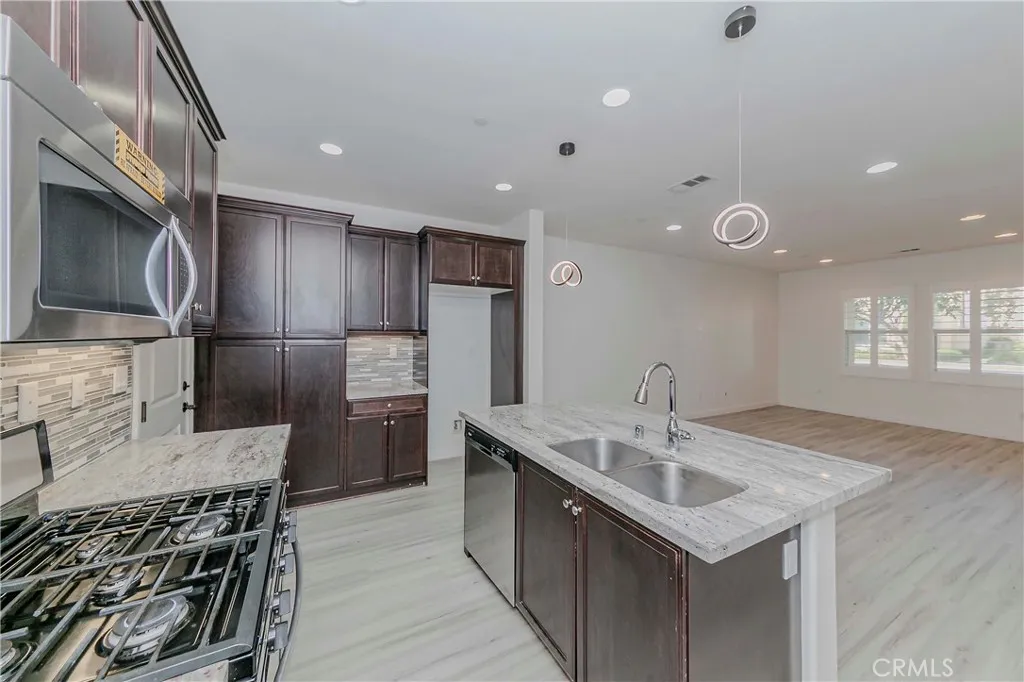 Meticulously updated throughout, this condominium is ideally located interior unit of La Floresta in Brea. This stunning home boasts 3 bedrooms, 2.5 baths, an open flow concept and private front patio. The kitchen includes a walk in pantry, stainless steel appliances, granite counter tops, mosaic tile back splash and functional center island. Upstairs you will find all three bedrooms and loft. The Master ensuite bathroom with double vanities. Second upstairs bathroom also has dual sinks. side by side laundry room is conveniently on the second floor, Additional features include plantation shutters in every room, recess lighting, ceiling fans in all bedrooms, a tank-less water heater, which is 80% higher efficiency than conventional heater, All of this located within walking distance to the community park, pool, clubhouse, La Floresta is a thoughtfully planned community with a mix of neighborhood amenities and energy efficient, easy living residential designs. There is also a master planned shopping center slated to have a Whole Foods Market and many other popular stores, Close to the 57 Freeway.