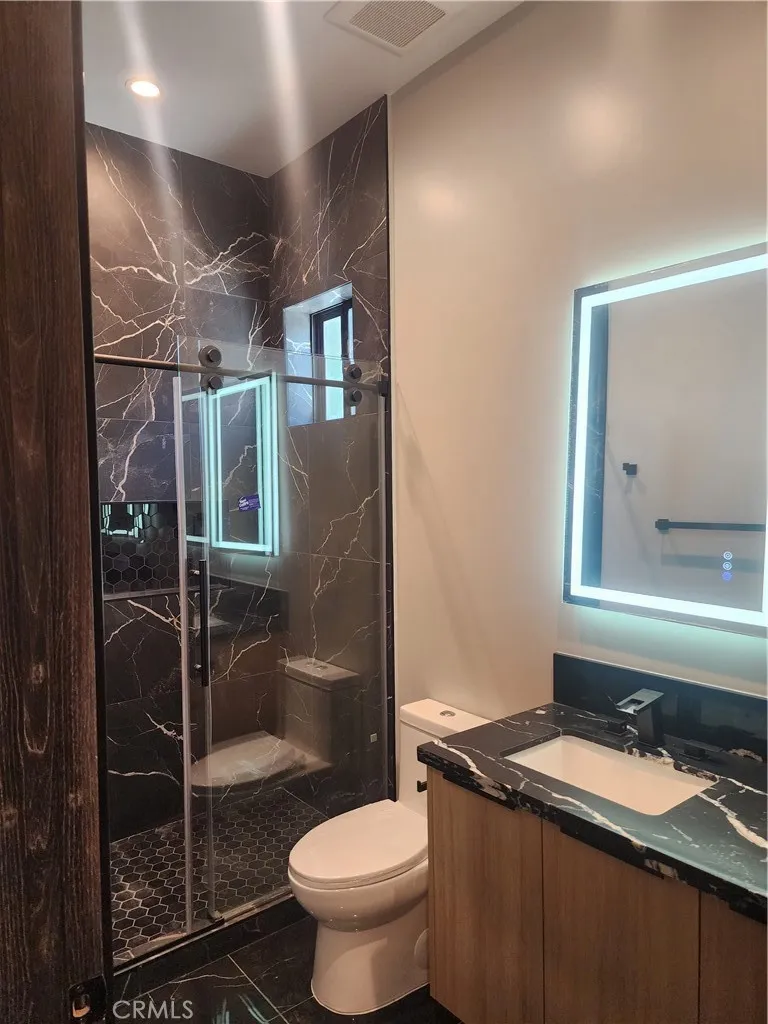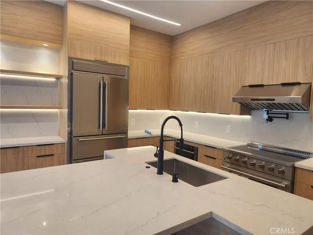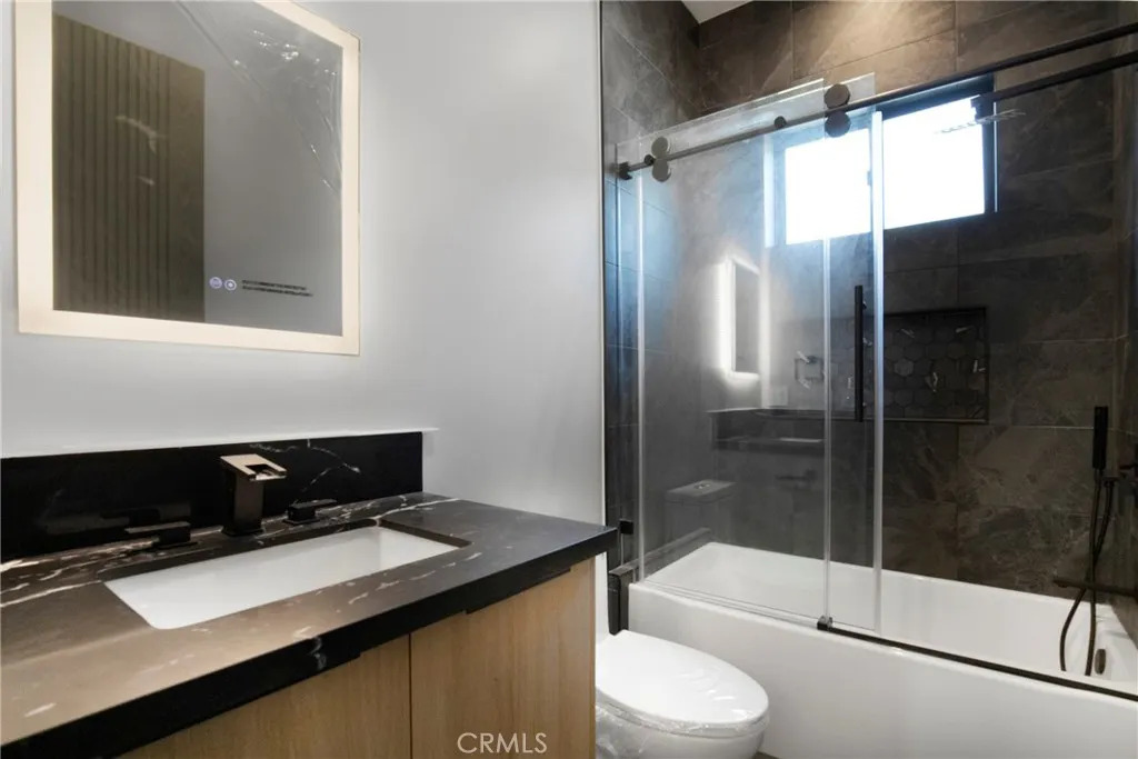 Be the first to live in this brand new 3 bedroom, 2 bath home (2025), offering approximately 1,122 sq ft of spacious interior with vaulted ceilings. Designed to feel like a private residence, it has its own separate address, gated entrance, and front yard. The layout features a primary suite with dual walk-in closets (his & hers) and a walk-in shower with a built-in bench. Two additional bedrooms share a Jack & Jill bath with a full tub/shower combination, and each has its own closet. A separate laundry closet with washer & dryer is also included. The chefs kitchen shines with quartz countertops, a massive center island, high-end stainless steel appliances, custom cabinetry, and a pot-filler faucet over the oven range. Designer LED lighting, hardwood-style vinyl plank flooring, and modern energy-efficient systems enhance the living experience. Bathrooms include LED faucet lighting that glows blue for cold water and red for hot, a unique and practical design touch. Additional features include two gated parking spaces behind an electric fenced gate. Prime Location: Minutes to Warner Center, Westfield Topanga & The Village, Pierce College, Winnetka Recreation Center, 101 & 118 freeways, parks, dining, and top-rated charter schools. Even the best photos cant fully capture the warmth, quality, and versatility of this home. A personal visit reveals the full value of this unique offering!