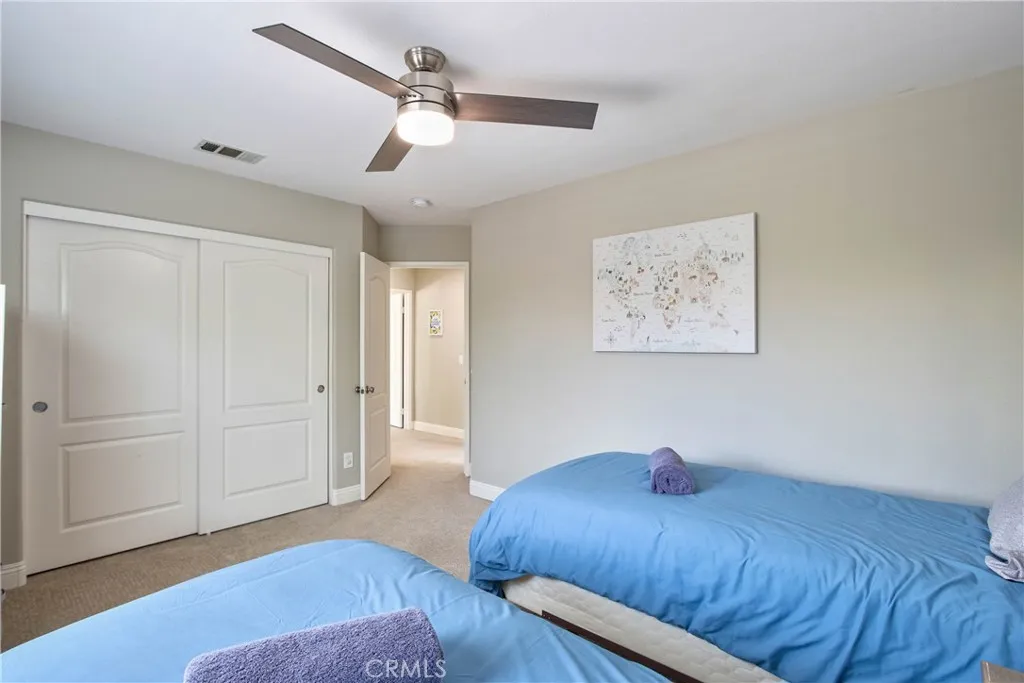 Welcome home to this stunning 5-bedroom, 3-bath residence showcasing numerous recent upgrades and thoughtful details throughout. Step inside to find new luxury vinyl plank flooring and plush carpet in the bedrooms, creating a warm and inviting atmosphere. The spacious kitchen features stainless steel appliances, granite countertops, and an open layout perfect for entertaining. Relax in the cozy living room with a gas fireplace, or retreat to the downstairs bedroom with a full bathideal for guests or multi-generational living. Upstairs, youll find four additional bedrooms, including a spa-like primary suite with a jacuzzi tub, separate tiled shower, and two walk-in closets. The convenient upstairs laundry room adds everyday practicality. Enjoy energy efficiency and savings with solar panels covering the entire electric bill and a Level 2 EV plug in the garage. Outdoor living is easy with a professionally hardscaped, low-maintenance front yard and a beautifully designed backyard featuring an Alumawood patio cover, stamped concrete patio, and a firepit with built-in seatingperfect for entertaining year-round. A storage shed is also included for extra space. Located in the highly desirable Temecula school district and with no HOA, this home offers both comfort and value. Dont miss the opportunity to make this exceptional property your own!