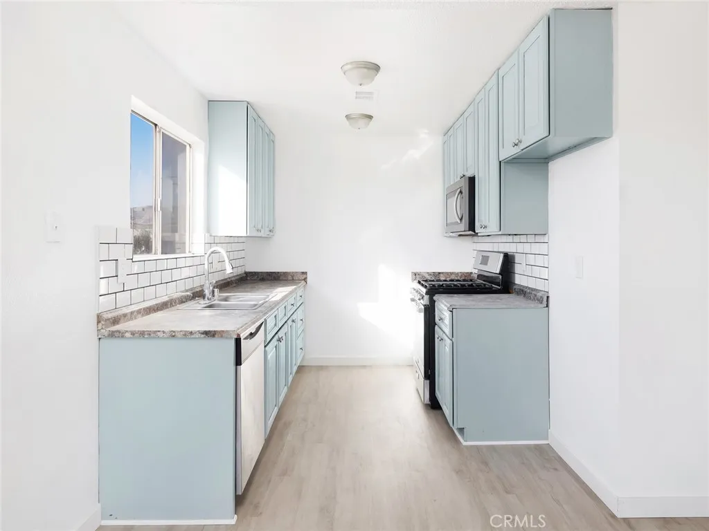 38423 10th Place East #3 a beautifully updated 2-bedroom, 1-bathroom apartment located in a quiet 4-unit complex in the heart of Palmdale. This upper-level, top-left unit offers comfort, convenience, and modern upgrades. Step inside to find brand-new sleek laminate flooring throughout the unit. A new remodeled full bathroom and a big outdoor patio The home features a brand-new central AC and heating system, ensuring year-round comfort. The brand new kitchen comes fully equipped with a stove, dishwasher and plenty of cabinet space. For added convenience, a washer and dryer are included inside the unit.. Enjoy the ease of 1-car garage parking, and a layout that offers privacy with just one shared wall above. With only two units upstairs and two downstairs, this unit provides a peaceful living experience in a small community setting. Conveniently located near schools, shopping, and easy freeway access. Dont miss this well-maintained and move-in-ready home schedule your showing today!