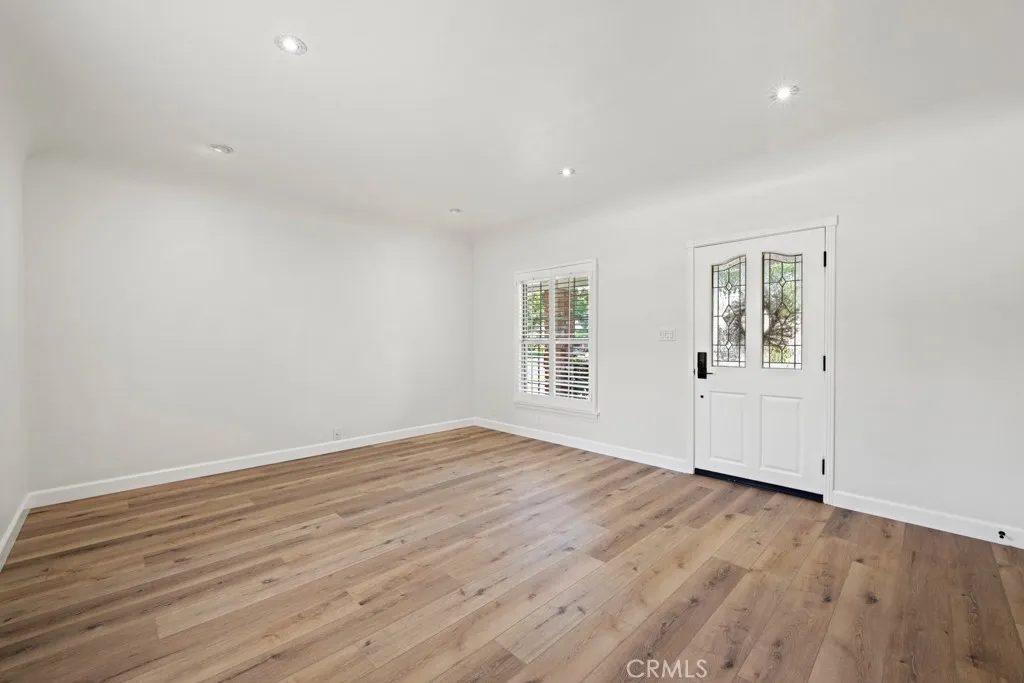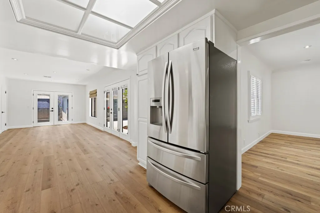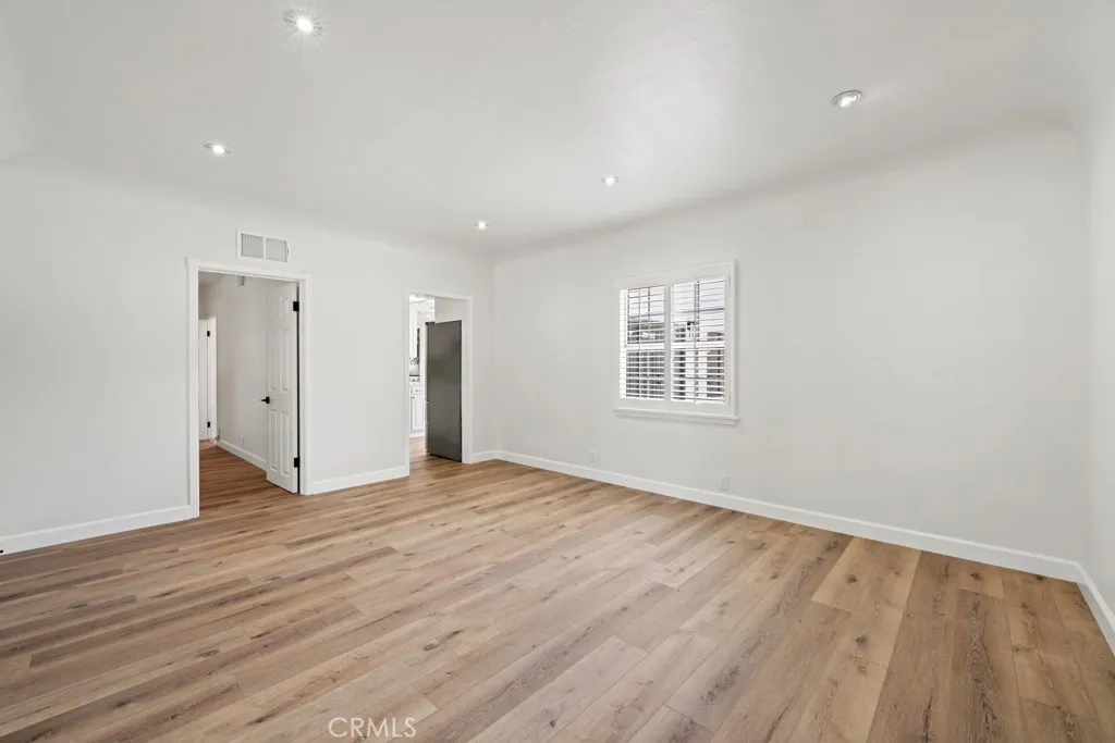 Charming Chandler Bike Path Home Remodeled with Rare 2.5-Car Garage Beautifully remodeled 2 bed, 2 bath home (optional 3rd bedroom with easy conversion) located on a tree-lined street along the Chandler bike path. Features include hardwood-laminate floors, recessed lighting, shutters, and abundant natural light. Spacious kitchen with white cabinetry, KitchenAid stainless appliances, 5-burner cooktop, built-in microwave, refrigerator, and indoor laundry with washer/dryer. The primary suite offers a barn door entry to a stylish remodeled bath with marble tile and walk-in closet. Downstairs bedroom includes mirrored wardrobe doors and en-suite bath with custom tile and walk-in shower. Family room features two sets of French doors opening to the landscaped backyard with lawn, planters, and covered patio area with ceiling fan. Drive-thru carport plus rare 2.5-car garage(Not an ADU). Prime location near studios, Empire Center, shopping, dining, and more!