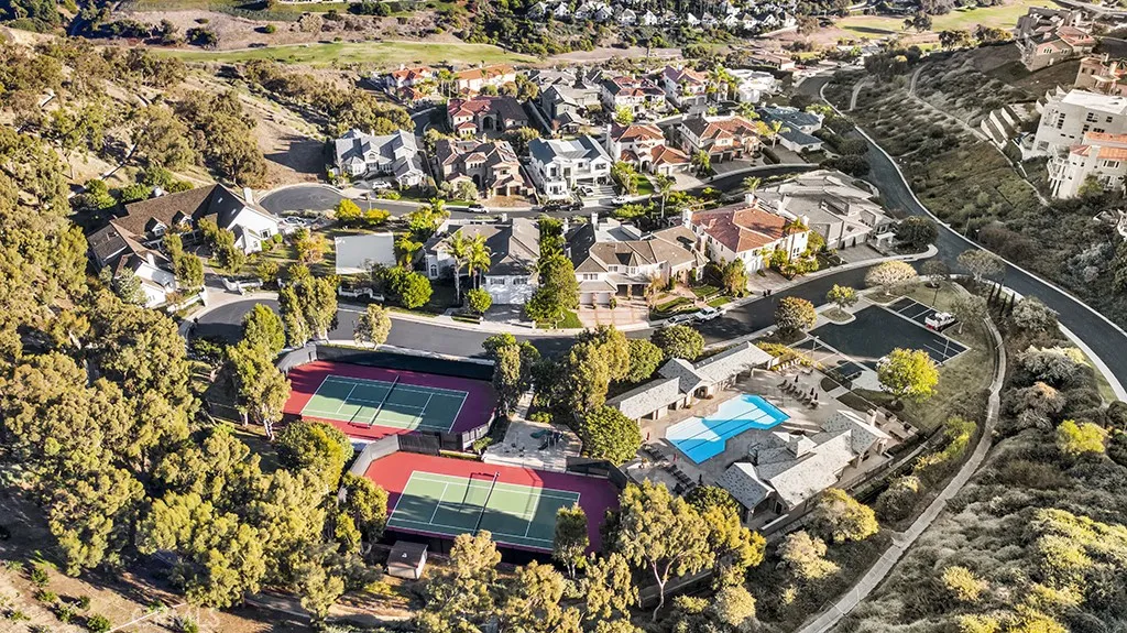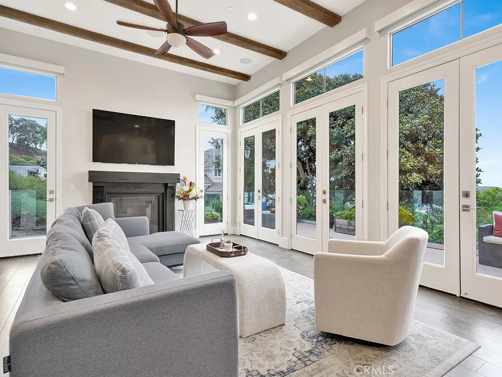 Gorgeous custom home in the exclusive guard-gated Sea Pointe Estates with 4 ensuite bedrooms, each with its own bathroom. With sweeping ocean and city-lights views from a private corner lot, this home is light and airy with soaring 12 ft ceilings accented beautifully with wooden beams throughout.The open kitchen features a Thermador range, quartz countertops, reverse osmosis water filter system, and a large walk-in pantry. The large family room opens to a beautiful outdoor patio with ocean views. Step out back to enjoy a beautiful central atrium courtyard with a built-in grill, fridge and gas fireplace - perfect for entertaining.Above the courtyard is a lovelygarden with a succulent wall that is open to the stars. Built-in surround sound can be enjoyed through most of the downstairs, courtyard, patio and in the primary bedroom. Downstairs hasa nice spacious ensuite bedroom and a guest bathroom. Upstairs you'll find a second family room, 3 bedrooms, each with an ensuite bathroom and walk-in closet, and a view deck with sweeping ocean and city views. Gorgeous sunrises greet you every morning. The expansive primary bedroom suite has its own private balcony with soaring ocean and city views. The primary bathroom has a jetted tub, a large walk-in steam shower, a reverse osmosis water filter by the sink, and a spacious walk-in his-and-her closet.The home has a whole house water softener system.The laundry is equipped with new LG washer and dryer. The 3-car garage has an epoxy floor and nice built-in cabinets, an EV outlet (for Tesla or others), and features extra tall doors and 1