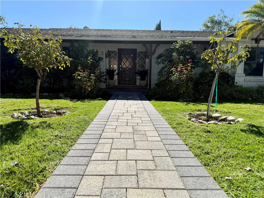 Through a beautifully landscaped garden, on the quietest part of Burbank Boulevard, we are proud to offer this mid-century estate for lease. The common living spaces feature beautiful wood floors and soaring ceilings with gorgeous beams, every corner suffused with natural light. The freshly updated kitchen features stainless steel appliances, gas range, and a lovely eat-in dining nook. The first oversized bedroom grants access to the private backyard with high ceilings and skylight, and the second bedroom features gorgeous built-ins surrounding the bay window with a bench overlooking the lush front yard. Your primary bedroom comes with three large closets, your own personal air conditioning if you don't need to cool the rest of the home, direct backyard access, and an attached bathroom with a spacious soaking tub and luxurious shower. The backyard oasis includes a mature avocado tree, complete privacy, and a two-car garage with laundry room attached. Come discover the perfect balance of home, location, and peace in Woodland Hills.