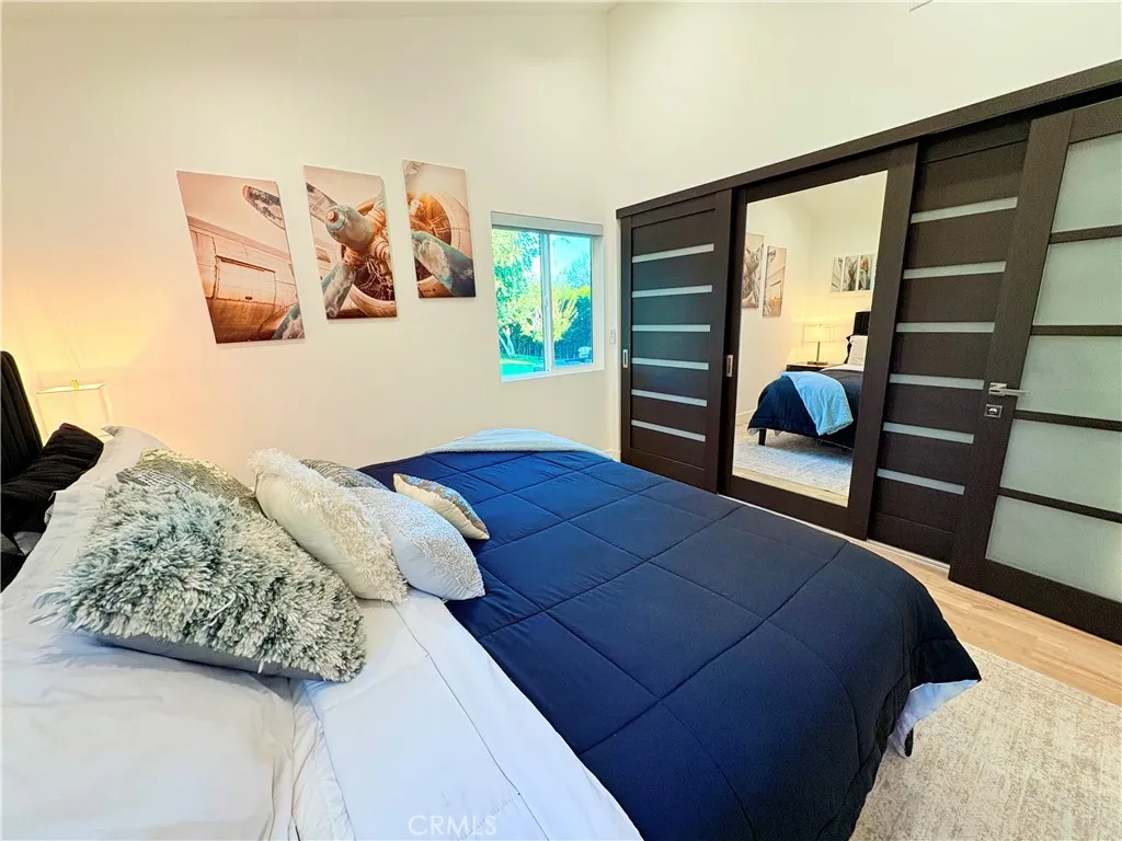 Experience sophisticated, turn-key living in this brand-new, two-bedroom, one-bathroom Accessory Dwelling Unit (ADU), perfectly situated on the desirable border of Burbank and Toluca Lake. Designed with luxury in mind, this home boasts soaring vaulted ceilings and a thoughtful open floor plan. The gourmet kitchen features top-of-the-line appliances and premium finishes, while the interior is complete with elegant wood and tile flooring, enhanced by custom blinds and spacious custom closets. Key features include a private, dedicated entrance, all appliances (including laundry), a luxurious dual-vanity bathroom, and the benefit of paid-off solar for reduced utility costs. Step outside to your exclusive, park-like sanctuary, complete with mature fruit trees, drought-tolerant landscaping, and custom outdoor lightingperfect for evening enjoyment. This is a truly prime location, as you are within walking distance of local favorites like Porto's, Starbucks, diverse dining options, and beautiful city parks, and just minutes from major studios, including Warner Bros., Disney, NBC, and Universal Studios, offering unparalleled convenience.