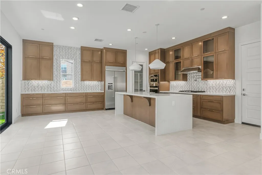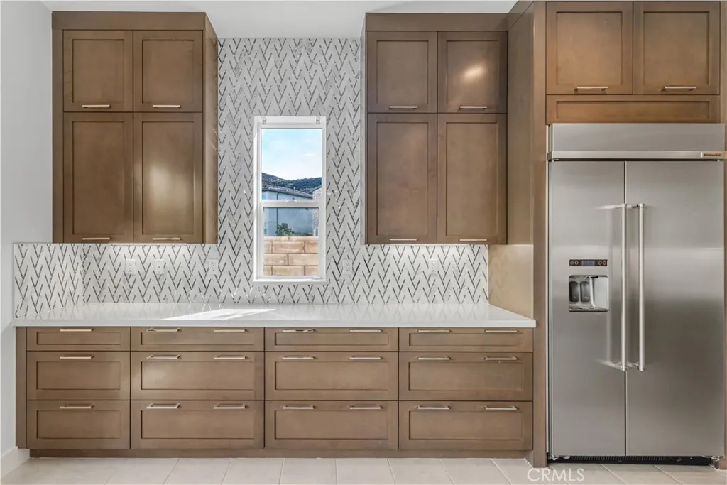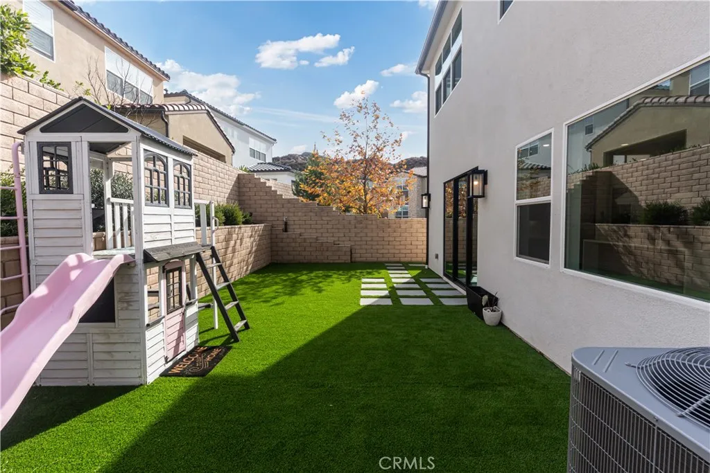 This luxurious, gated 5-bedroom, 4-bathroom home with a loft is tucked away in a serene neighborhood in Santa Clarita. Spanning 2,577 square feet, this home boasts a thoughtfully designed interior filled with high-end upgrades. As you enter, youre greeted by beautiful tiled floors that flow throughout the open-concept first floor. Large windows with custom blinds allow natural light to flood the space, creating a bright and welcoming atmosphere. The chef-inspired kitchen is a standout, featuring stunning quartz countertops, built-in stainless-steel appliances, and an oversized sink. Recessed lighting casts a warm glow on the rich wood cabinetry and the expansive kitchen island, which boasts elegant waterfall stone edges. A bedroom and full bathroom on the main floor offer perfect accommodations for guests.Upstairs, an inviting loft area provides a cozy retreat, while the massive primary suite is an oasis of comfort. It offers dual vanities, a luxurious glass-enclosed shower, and a spacious walk-in closet with custom-built cabinets. The second bedroom comes with its own private bath, and the additional two bedrooms share a well-appointed full bathroom. For added convenience, an upstairs laundry room makes everyday chores a breeze.The backyard is an entertainers dream, featuring lush grass and a charming playhouse. Other notable features of the home include solar panels and direct access to the garage. Ideally located in one of Santa Claritas most sought-after communities, this home offers easy access to freeways, shopping, dining, and top-rated schools.