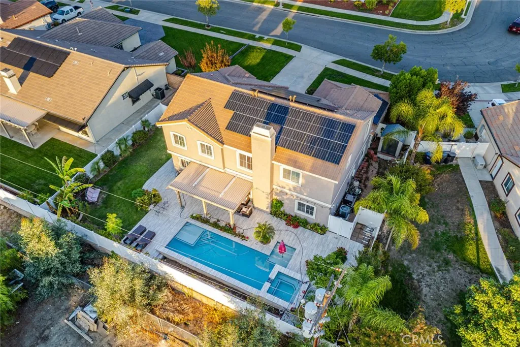 Watch Video before Scheduling Tour (https://youtu.be/_eD8WQ1nIz8) Welcome to an exceptional two-story residence offering refined living on a generous lot in one of Redlands most desirable neighborhoods. One of only twelve semi-custom homes built in this quiet cul-de-sac, this property features 5 spacious bedrooms, 3 bathrooms, and a versatile loft that can easily serve as a sixth bedroom, media room, or home office. The primary suite includes a private balcony, creating a serene retreat with views of the surrounding neighborhood. Beautiful hardwood floors flow through the main level, enhancing the homes timeless appeal, while a long driveway and three-car garage provide ample parking and storage. The expansive backyard is designed for outdoor entertaining, complete with a sparkling swimming pool and generous patio space ideal for gatherings with family and friends. A thoughtfully installed solar energy system, leased for $264 per month and saving approximately $350 monthly in utility costs, offers significant ongoing savings and greater energy efficiency..... Set in sought-after North Redlands, this home enjoys a tranquil, residential setting known for its tree-lined streets and welcoming community. The location blends everyday convenience with elevated livingminutes from top-rated schools, boutique shopping, vibrant dining, the University of Redlands, and premier medical centers such as Loma Linda University. Outdoor enthusiasts will appreciate nearby Scott Canyon hiking trails and the citys beautifully maintained parks and recreation facilities, while those who enjoy cult
