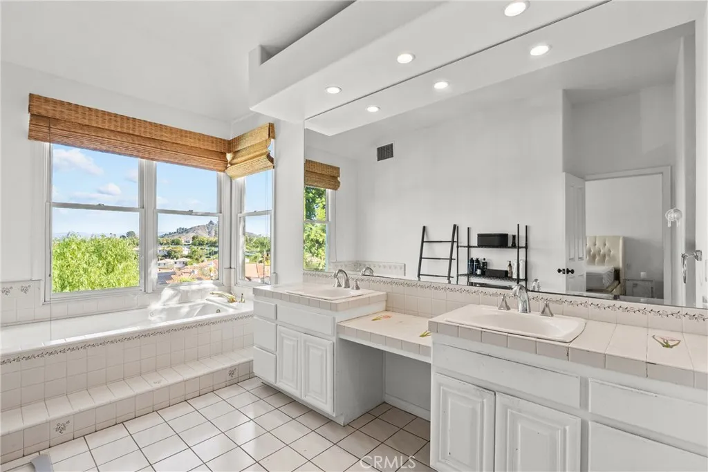 Calabasas Park Estates Residence! Stunning two-story home featuring 5 bedrooms, 3.5 bathrooms, and 2,798 sq.ft. of thoughtfully designed living space. Highlights include maple hardwood floors, recessed lighting, and a light-filled kitchen with granite countertops. The spacious primary suite offers a walk-in closet, city views. Gym area. The private backyard is perfect for entertaining, complete with a sparkling pool and spa. Situated within a prestigious 24-hour guard-gated community, providing exceptional security and privacy.