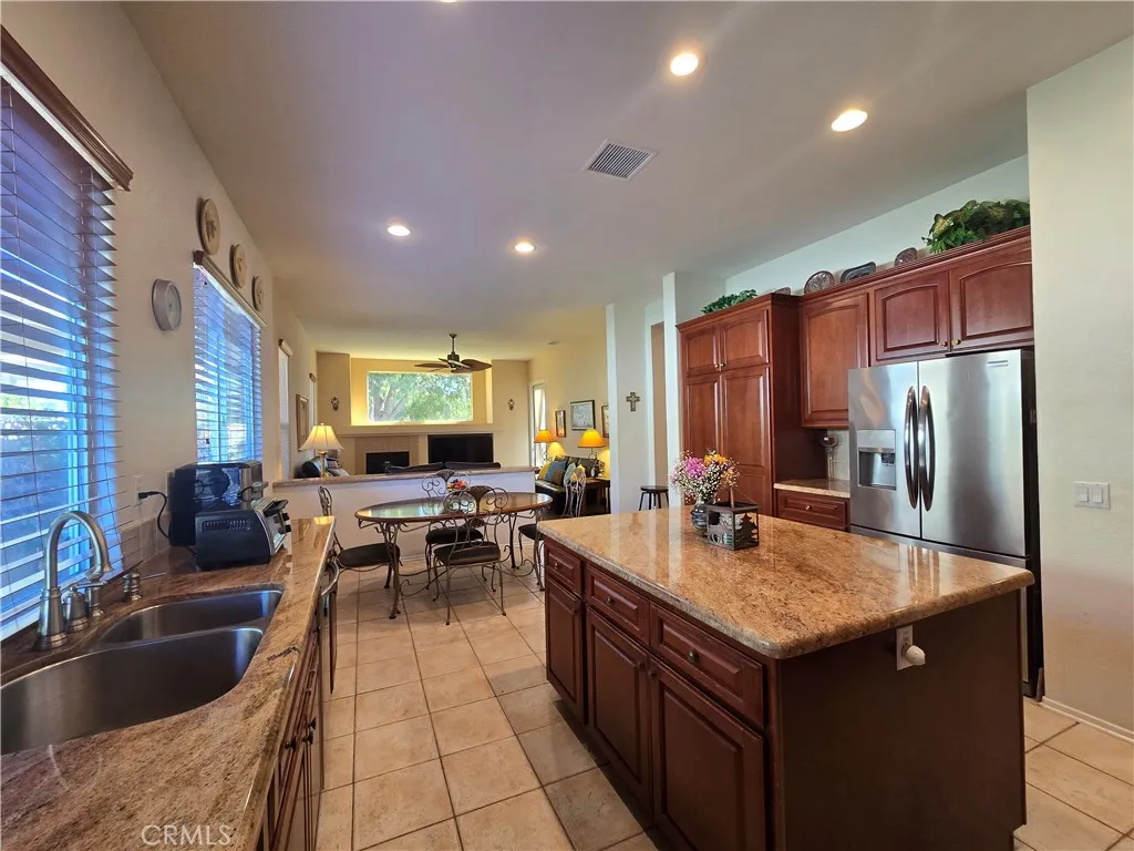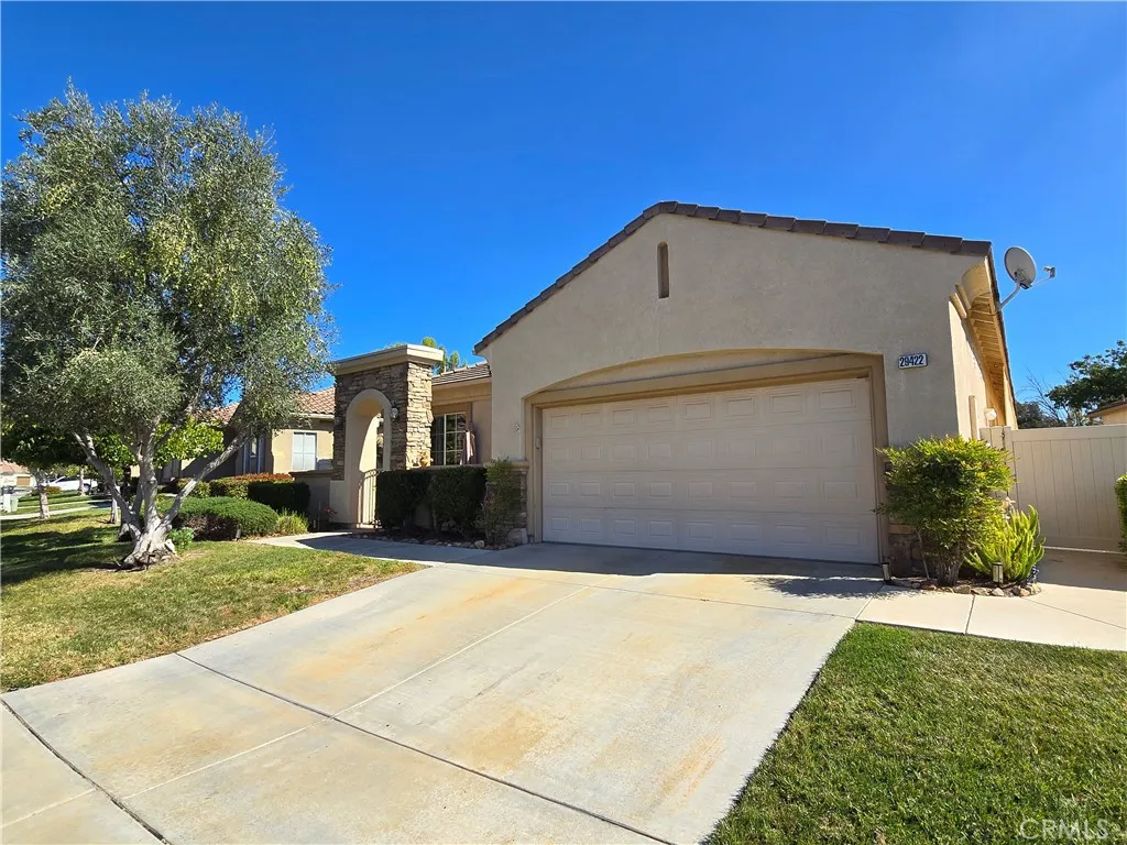 Live the good life in this beautiful turnkey home in one of Menifees most sought-after 55+ gated communities The Oasis. Welcome to this immaculately maintained 2-bedroom, 2.5-bath single-family home offering 2,382 sq. ft. of bright, spacious living. Located within a guard-gated senior community, this residence perfectly combines comfort, elegance, and resort-style amenities. Step inside to find tile flooring in the entry and kitchen, laminate wood floors in the living areas and office, and high ceilings that create an open, airy feel. The kitchen features granite countertops, generous cabinet space, and includes all appliances refrigerator, microwave, washer, and dryer. Enjoy serene outdoor living with a charming front porch and a back patio overlooking the golf course, perfect for morning coffee or evening relaxation. Additional highlights include a 2-car attached garage and a shed for additional storage and access to the communitys premium amenities, featuring: 24-hour guard-gated security Swimming pool and spa Fitness center and library Tennis courts and billiards room Plenty of other activities listed on the upcoming events bulletin posted in the clubhouse This move-in-ready home is the perfect blend of luxury, comfort, and active adult living everything you need to enjoy your next chapter in style.