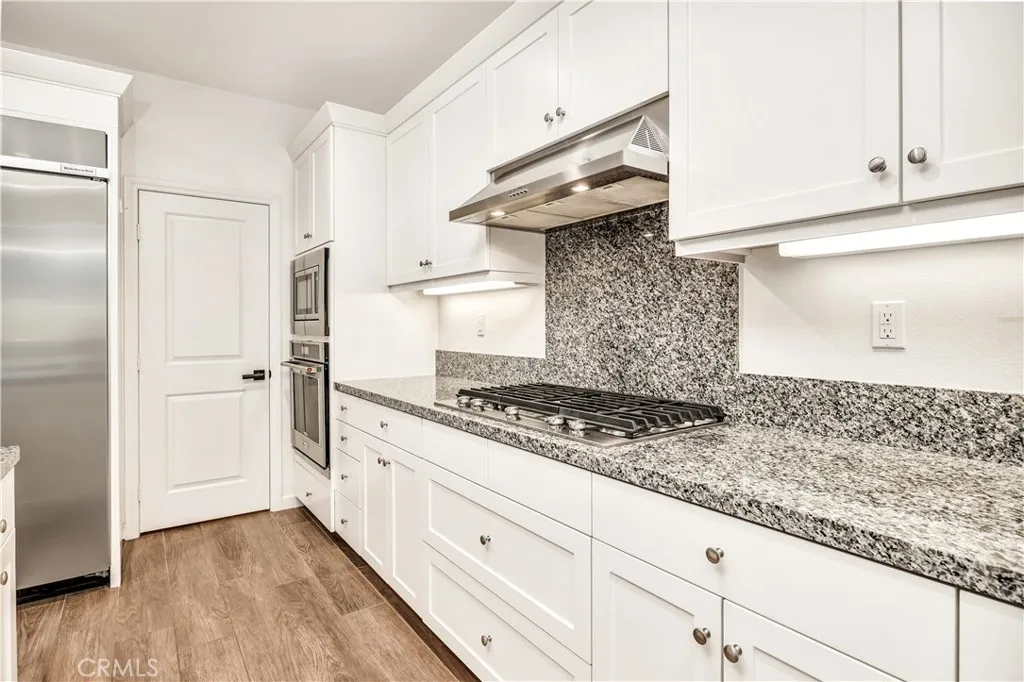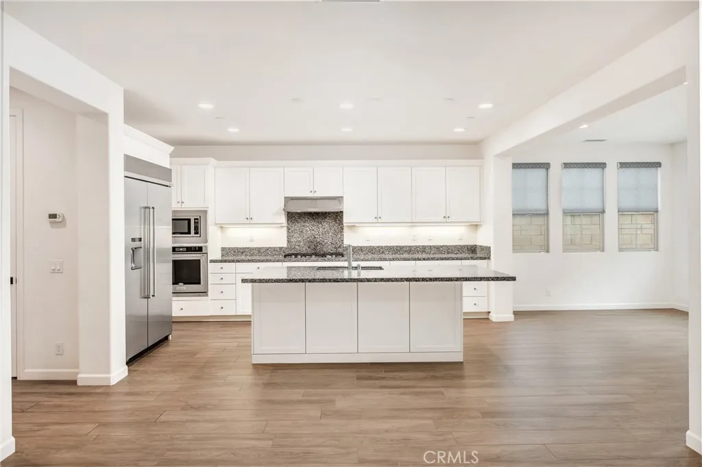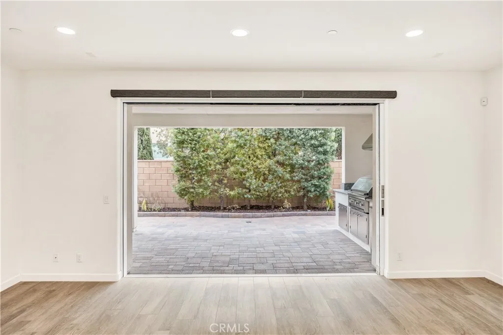 Ideally located in the highly sought-after Greenwood Community in Tustin Legacy Area. Boasting 4 bedrooms, 4.5 bathrooms, Residence 3 with outdoor kitchen. This turnkey home will greet you with the warm wide wood plank tile floors. Main level open floor plan with one bedroom downstairs. Well-appointed kitchen, complete with granite counter tops, KitchenAid stainless-steel appliances and Kohler farmers sink. Kitchen opens to the bright dining and living room area with multi-panel pocket doors to the yard. Ascending to the second level, youll discover three bedrooms and family room. The primary suite impresses with en-suite bathroom and dual walk-in closets, soaking tub and separate shower. Bedroom three with en-suite bathroom and fourth is spacious and bright. Second floor laundry with lots of storage. Landscaped backyard with covered outdoor room with outdoor kitchen with gas grill, hood and fridge, sink. Two car garage with electric car outlet. Notable enhancements, custom shutters and draperies, neutral paint, functional floor plan. This community has pool and spa, clubhouse, parks and BBQ area and childrens playgrounds, basketball courts. Located near to shopping, parks, and freeways.