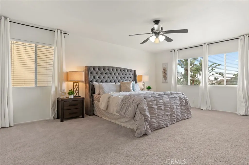 Located behind the private gates of the highly desirable Village of Independence community, this stunning residence exemplifies elegance and modern comfort. Built by Lewis Homes, this exquisite Walt Whitman Plan 522 offers a rare dual-primary design, featuring TWO primary suitesone conveniently located on the first floor, DOWNSTAIRS primary suite, and another upstairs, perfect for multigenerational living or guest accommodations. Three additional secondary bedrooms upstairs, making a total of five full bedrooms. The updated gourmet kitchen showcases sleek white quartz countertops, stainless steel appliances, and gorgeous laminate wood flooring that flows seamlessly throughout the home. A brand-new HVAC system, both upstairs and downstairs, ensures year-round comfort. Enjoy the convenience of a three-car garage, an upgraded powder room, and ample storage space throughout. Upstairs, youll find a versatile bonus room ideal for play, study, or relaxation, along with the second master bedroom and three additional bedrooms. The layout includes a full bathroom serving the secondary rooms, balancing practicality with style. Perfectly located just minutes from Victoria Gardens, and within walking distance to top-rated schools, this home offers luxury, function, and the ideal Southern California lifestyle.