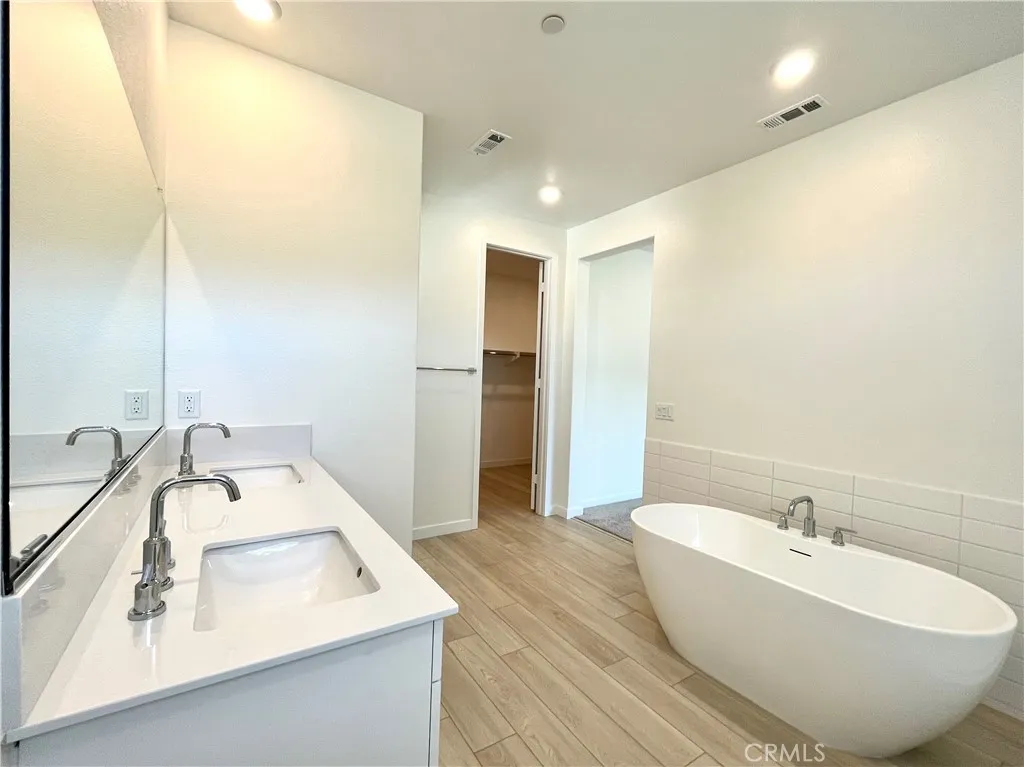 Newer luxury single family home within the Five Points at Valencia. Now move-in ready! This stunning property offers a generous 2,858 square feet of living space, providing room for comfort and relaxation. With 4 bedrooms and 3 full bathrooms, there is ample space for the entire family to enjoy. The house is adorned with luxurious Vinyl Plank Flooring throughout except on stairs and bedrooms. For your guests, this home includes a bedroom and full bath downstairs. The expansive open kitchen is a chef's dream, boasting Wolf appliances, add to the luxury of this beautiful new home. Additionally, you can enjoy entertaining or lounging in the upstairs open loft! The primary suite will provide the perfect setting for relaxation, the master retreat offers a peaceful oasis. This home is not only beautiful but also energy efficient, boasting a tankless hot water heater, programmable Ecobee smart thermostats, and solar panels. The great community offers so much! Pools, spa, club house, multimodal paths, gardens and a playground. Located minutes from I-5, Six Flags Magic Mountain and Valencia Westfield Mall. Easy access to shopping, dining, entertainment and highly-rated schools. Don't miss out on this extraordinary opportunity and schedule a tour today!
