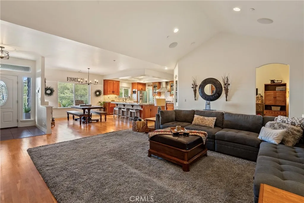 Welcome to this exceptional 3 bedroom, 2 bathroom executive home offering 2363 sf of refined living space on two separate APNs totaling 3.76 acres in the prestigious 3F Meadows community. As you approach through the automatic gated entrance, the property unfolds beautifully, with the home perfectly perched atop the hill to capture sweeping, unobstructed views. A charming east-facing, covered patio welcomes youan ideal spot to enjoy peaceful mornings. Step inside and youre greeted by rich hardwood floors that flow through much of the main living area. The spacious living room impresses with vaulted ceilings, built-in cherry cabinetry and a cozy gas fireplace. The dining area is enhanced by a large picture window that frames the stunning vistas beyond. The gourmet kitchen is a true standout, featuring new granite countertops, a stylish tiled backsplash and ample space to entertain with ease. Retreat to the massive primary suite, thoughtfully designed as a calming sanctuary. It offers plantation shutters, a French door to the backyard and a gas fireplace for added ambiance. The luxurious ensuite bath includes a soaking tub, a walk-in shower with dual shower heads and a generous walk-in closet complete with organizers. Two guest bedrooms and a full guest bath are privately situated on the opposite side of the home. Outside, youll find an expansive covered patio with lighting and wiring for soundperfect for year-round enjoyment. The serene setting includes a tranquil water feature, an outdoor fireplace and a large deck ideal for relaxing or entertaining. Additional amenities inc
