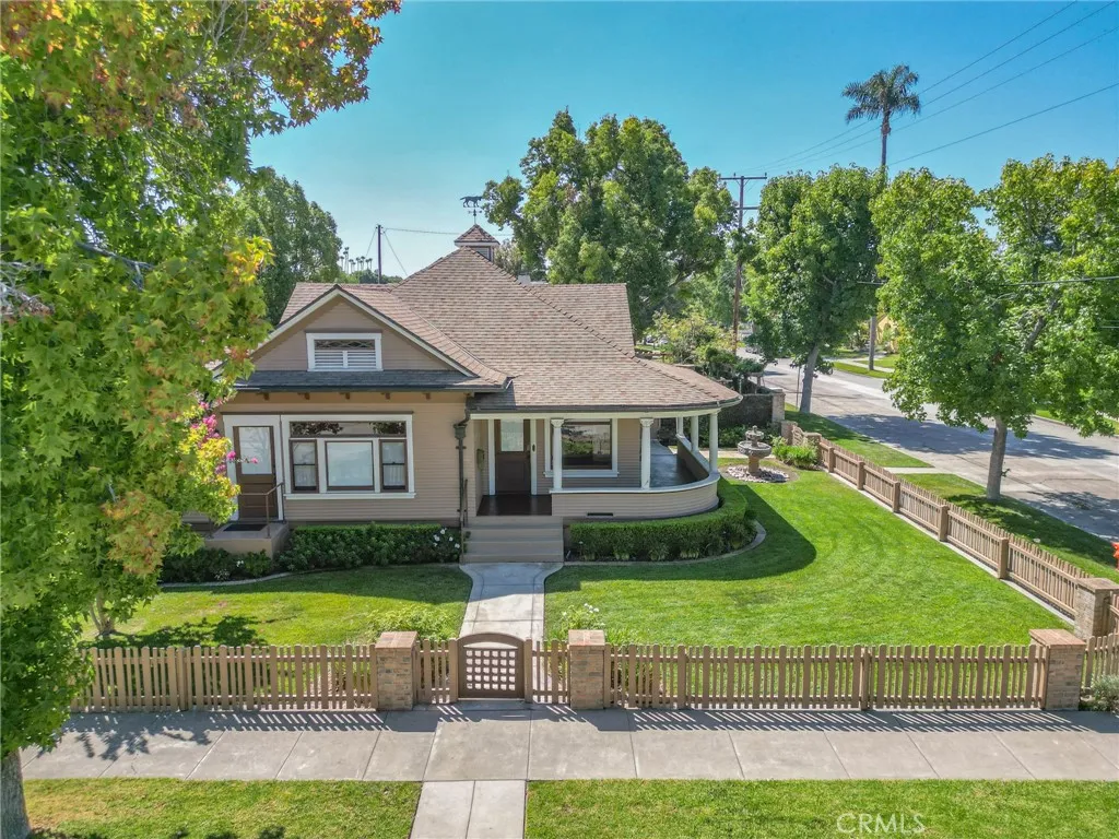 A 'classic' Classic Revival located near the heart of Old Towne Orange. This updated and remastered gem is rarely on the market. From the picket fence enclosed front yard to the refurbished interior wood floors-this home is everything you would want in a historic house. Features include-wraparound front porch, bird fountain in yard, Open floorplan kitchen with new granite counters and cabinets-stainless steel kitchen appliances-interior washer/dryer room with folding area- picturesque windows-enclosed rear yard- finished garage with off street alley access-bonus room and kitchenette in backyard-and best of all, Central Air. This is a must see home only steps from the Orange Plaza.