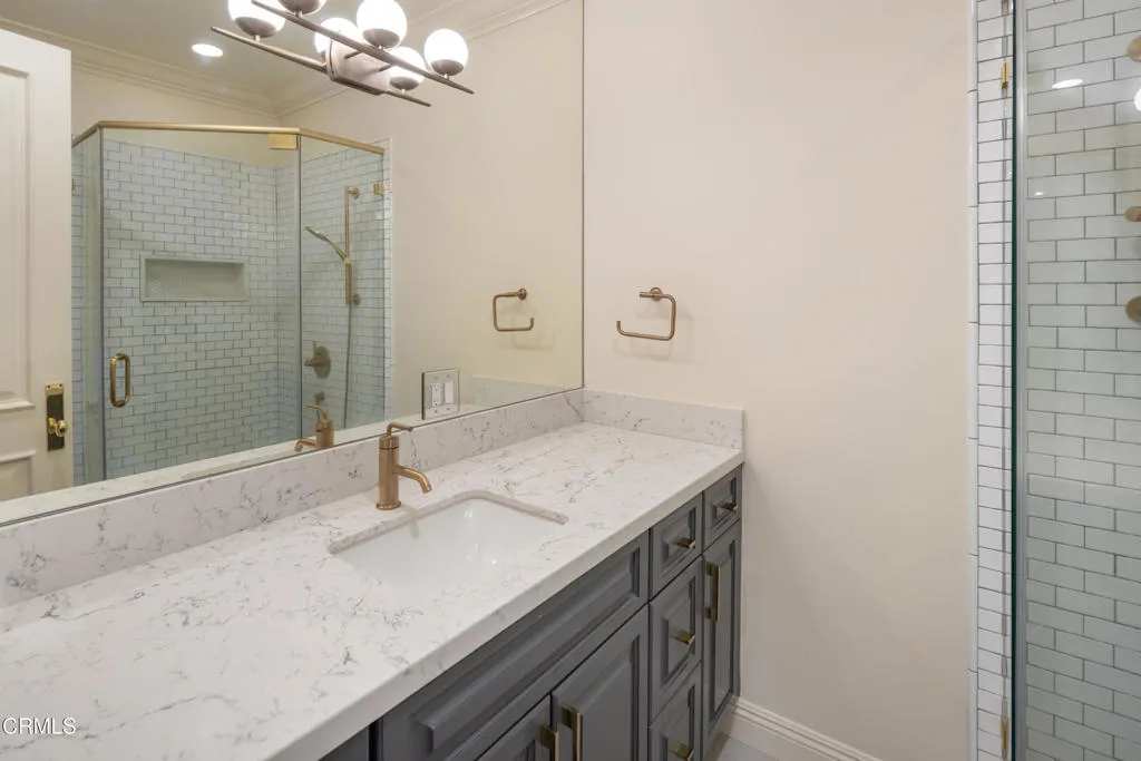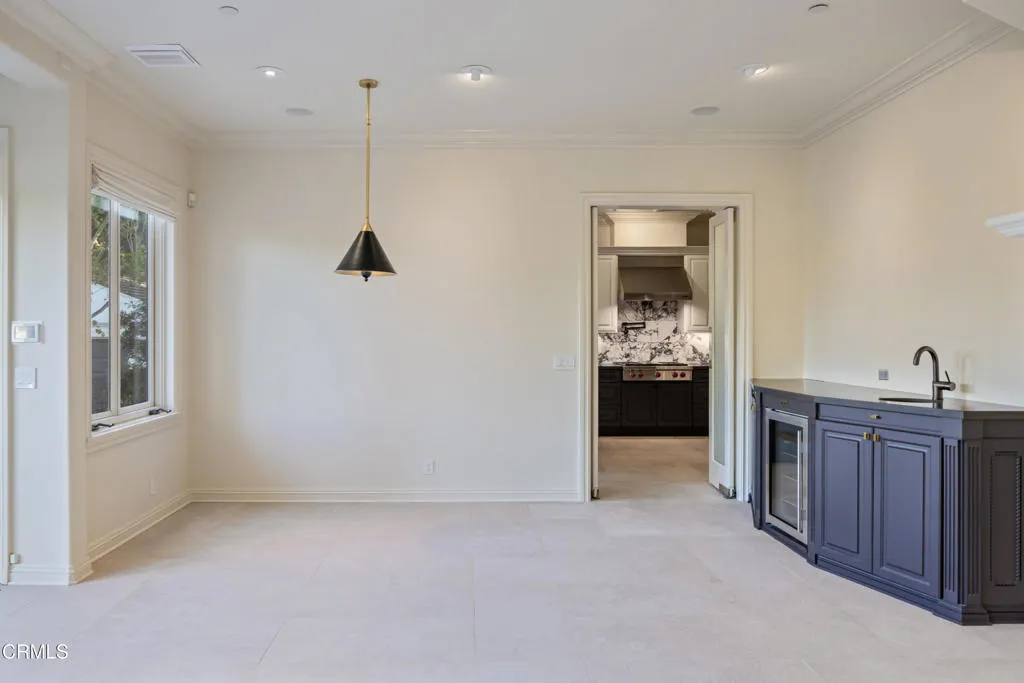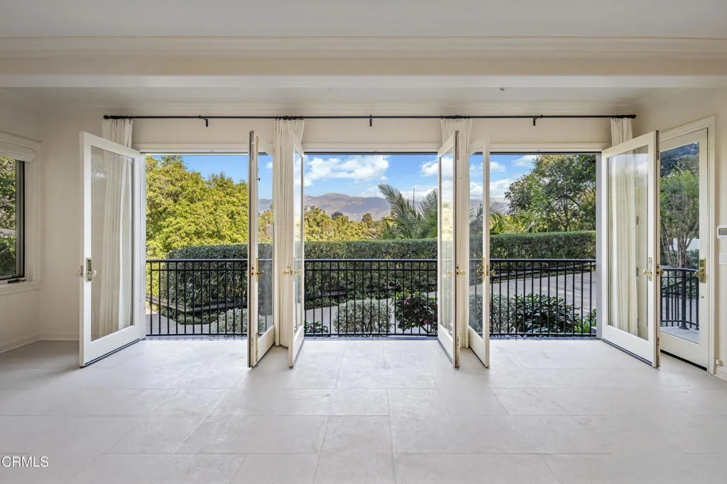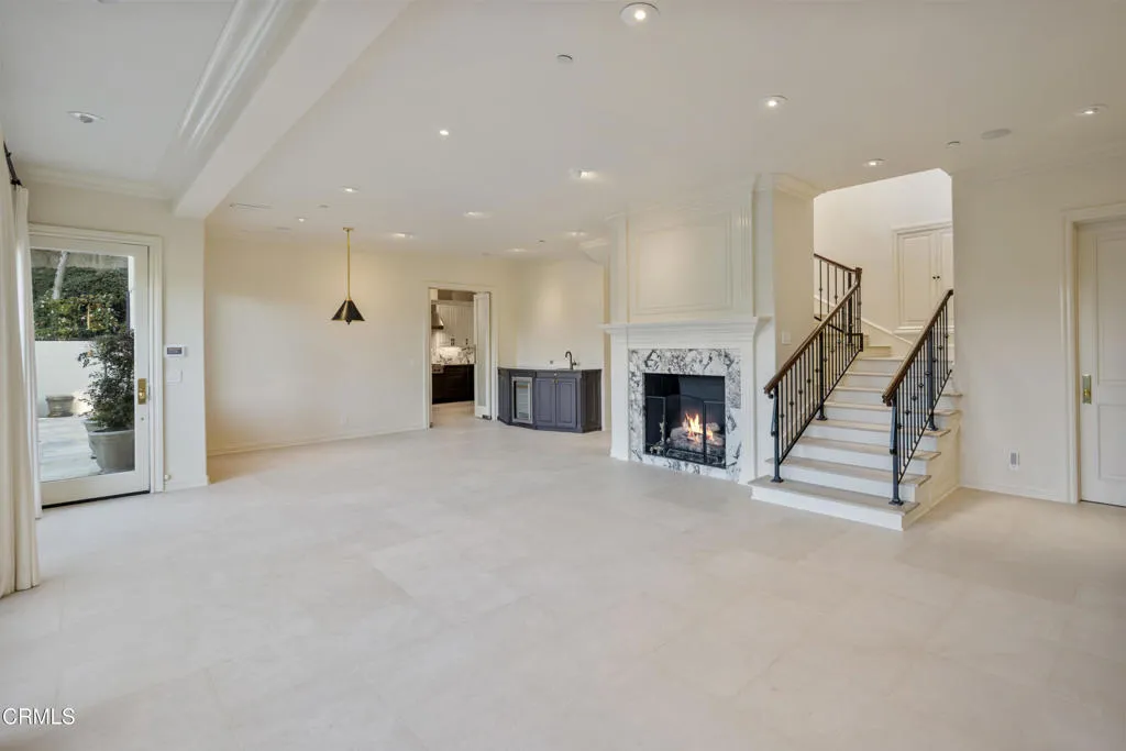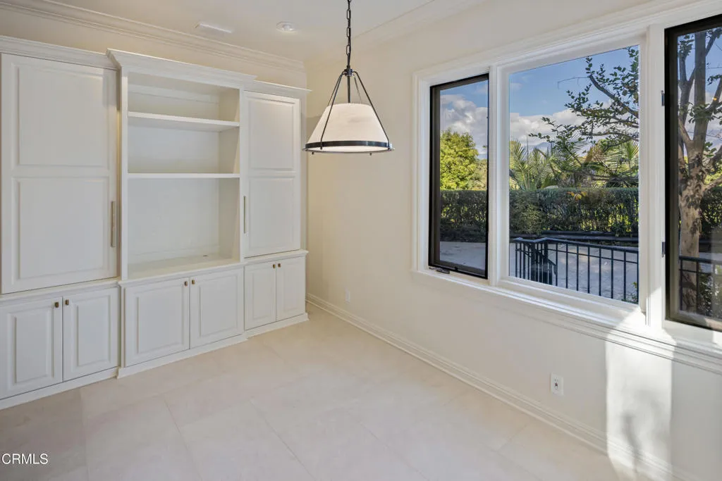 Serene and private, this unique and spacious 4 bedroom home in South San Rafael area of Pasadena is for a lease! The lovely and gracious home is located high above a tranquil cul-de-sac to capture uninterrupted vistas of San Gabriel Mountains. Approached through a gated private drive this gracious home reveals itself with quiet grandeur with soaring heigh ceiling, oversized French doors, and expansive windows to capture light and tree-top vistas. This sophisticated home boasts the open floor plan, the interior serenity, a sleek fireplaces, effortlessly integrated wet bar and concealed storage. On the first floor, the entry door opens to the grand living room with the fireplace, and adjacent dinning area and powder room. The adjoining kitchen and breakfast nook features chef's appropriate appliances by Wolf, Sub-Zero and Miele. A generous first-floor suite with two oversized double French doors offers the multi-function that can be used as a media room, guest suite, or a bedroom. A sculptural central staircase to upstairs wraps around the fireplace column and leads to an upper level lounging area with a breathtaking mountain vistas through a dramatic French doors opening to an expansive balcony. This open and airy space can be utilized as a second living room, library or peaceful lounging room. The primary suite as an entire wing unto itself features an opulent bathing suite, expansive closet room, and direct access to the upslope rear lawn and garden. Two additional bedrooms on the opposite wing is conveniently equipped with its own bathroom en suite and spacious closets. A