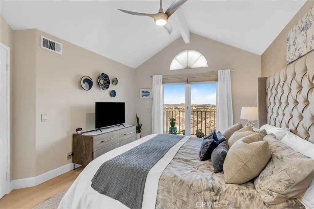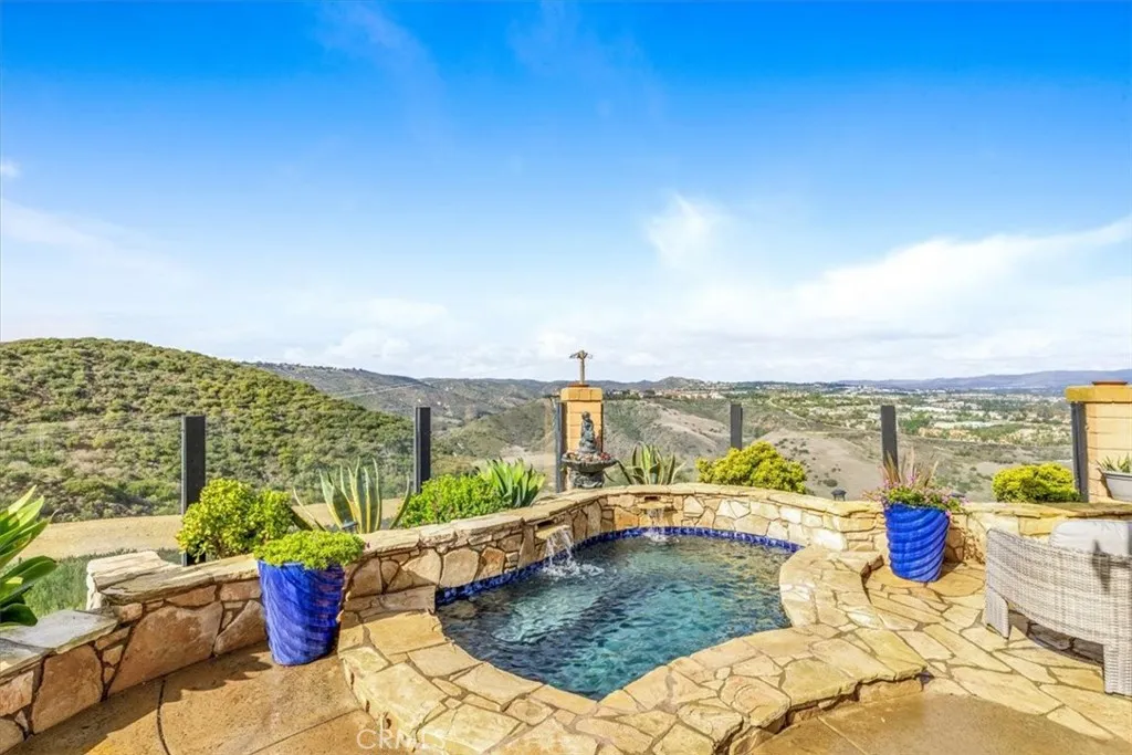 Phenomenal panoramic views welcome you to this refined two bedroom, two and one-half bath home, thoughtfully remodeled with high-end finishes throughout. Elegant engineered flooring flows through the living spaces, complementing a designer kitchen appointed with crisp quartz countertops and updated cabinetry. The bathrooms feature marble counters and elevated fixtures that create a spa-like experience. Set on an impressive wrap-around lot, the exterior offers exceptional space for entertaining, unwinding in the private spa, or simply enjoying the phenomenal panoramic views. With scenic hiking trails located nearby, the home provides a perfect blend of luxury living and Southern California outdoor lifestyle.