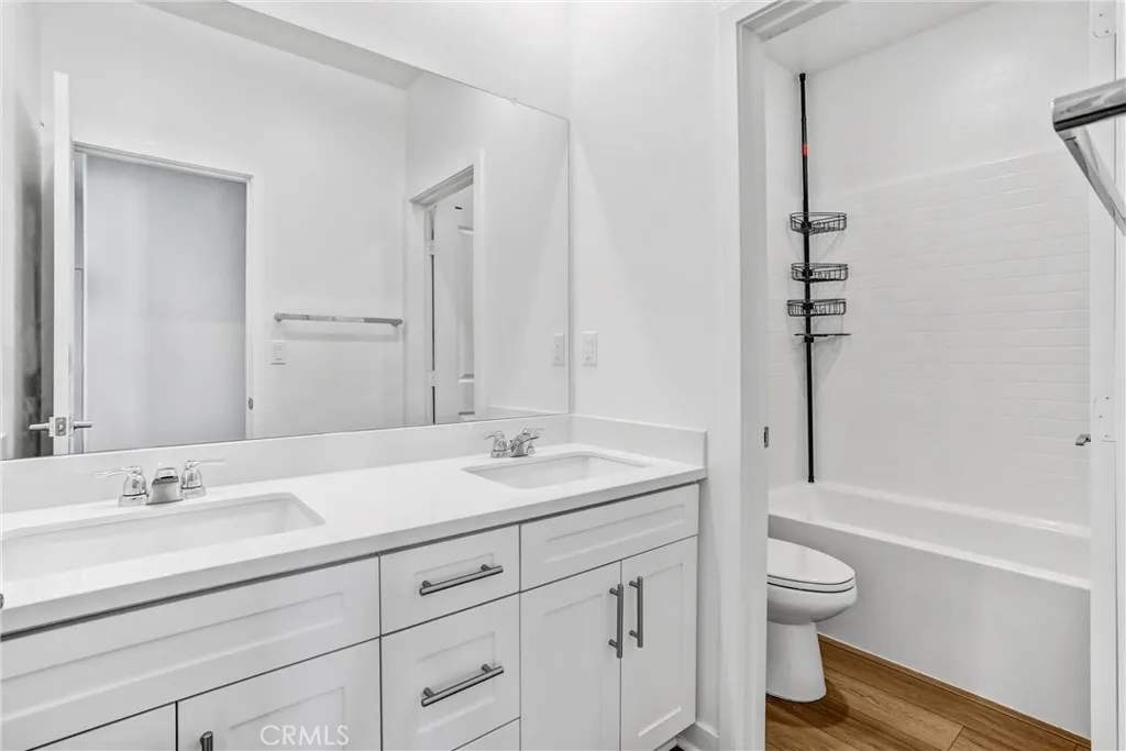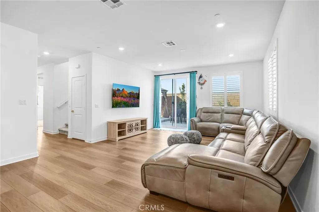 Welcome to 2023-built NEW Construction within a highly sought after PRIME LOCATION of Ontario Ranch in a tranquil neighborhood adorned with tree-lined streets. Upon arrival, the property's stunning curb appeal immediately captivates, featuring vibrant landscaping & a covered porch. Step through the front door to a entry with high ceilings that expand to a living room that seamlessly transitions into the dining area & large gourmet kitchen, replete with modern finishes including quartz countertops, newer appliances, laminate flooring, LED lighting, an oversized island offering plenty seating, & ample storage spaces. Glass sliding doors in the living room open to a generously sized low-maintenance landscaped yard, ideal for relaxing, hosting gatherings, & entertaining guests. A perfect 1st floor guest bedroom, full bathroom, & coat closet complete the ground floor. Ascending the staircase, the primary suite features a spacious walk-in closet and stunning bathroom with a walk-in shower & dual sink vanity. 3 additional bedrooms share a full bathroom with a sleek sink vanity & tub shower. A large laundry room with versatile space completes the second floor. Natural light bathes the home through the dual-pane windows, elevating the open, airy floor plan and greats the perfect balance due to the upgraded window shutters. There are also pre-wired ceiling junction boxes in the bedrooms & dining area to further enhance your lighting ambiance with future stylish light fixtures. Energy efficiency & savings are maximized thanks to the PAID OFF SOLAR SYSTEM which boosts a comfortable & p