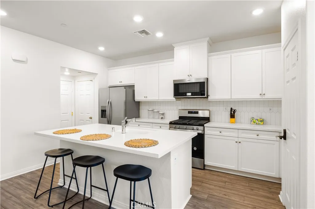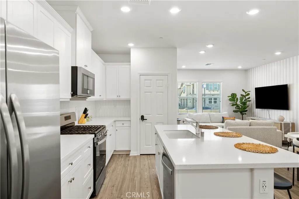 This condo has driveway and a small front patio and it is gas stove! ALL Frunitures included in the sale! This home is a two-story, 1,555 sq ft townhouse/condo built in 2023 in the Moonstone community. It offers 3 bedrooms and 2.5 bathrooms a layout with all bedrooms upstairs. On the main floor, an open-concept living area and kitchen benefit from extra side windows that bring in abundant natural light. The kitchen has white shaker-style cabinets, quartz countertops, a central island with stainless-steel sink, and stainless-steel appliances including a gas stove, dishwasher, and vented microwave.Upstairs, the primary suite features a walk-in closet and a spa-style en-suite bathroom with dual sinks and a walk-in shower. The two other bedrooms are across the hall, plus theres a full bathroom and a laundry room on the upper level. As part of the community, residents may enjoy upcoming amenities including parks, a dog park, pickleball courts, and a resort-style pool and spa.