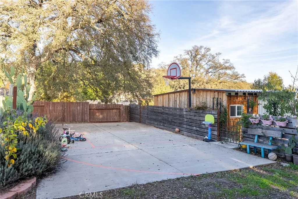 Step inside this charming 4-bedroom, 2-bathroom home, featuring 1,284 sq. ft. of thoughtfully designed living space situated on 0.44 acres.. Laminate flooring flows throughout the main areas, complemented by vaulted ceilings that create a bright, open atmosphere, perfect for relaxing or entertaining. The kitchen and dining area feature a seamless layout, ideal for cooking and gathering with family and friends. Natural light pours in through large windows, highlighting the warm and welcoming environment. The primary bedroom is a spacious retreat with an attached ensuite, showcasing a beautifully updated glass-tiled shower, custom mosaic inlays and niches, and a stylish vessel sink. The additional bedrooms offer ceiling fans, laminate flooring, and comfortable space for family or guests. Dont miss that hallway bathroom with an updated tile shower/tub combo with beautiful vanity. A 10-year-old roof provides peace of mind to this home. Outside, the backyard offers ample space for entertaining, play or relaxation. Two covered patios provide ideal outdoor living areas, while the basketball court and versatile RV or boat storage add to the propertys functionality. Additional features include a shop with shelving and power, perfect for projects, storage, or hobbies. This charming home combines comfort, functionality, and style, all in a convenient location close to town, grocery stores, and restaurants. Dont miss your opportunity to make it yours!