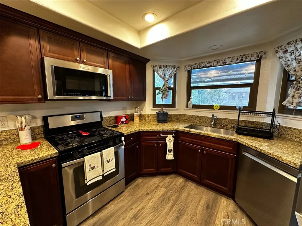 The photos show a darling staged upstairs 2 bedroom home that has all the charm and upgrades your busy life demands. The private upstairs patio welcomes you, the interior has easy care luxury plank flooring, a fireplace, granite counters, ceiling fans, plantation shutters, stainless steel appliances and a separate vanity for the primary bedroom and a walk in closet. This unit also features a separate laundry room. The community area features a lovely pool surrounded by a lush carpet of grass. This unit has a convenient one car garage below and a dedicated covered carport space (#40) for both of your cars. There is fresh new paint and ceiling fans throughout, the stove and refrigerator will remain, just pack your socks and towels.