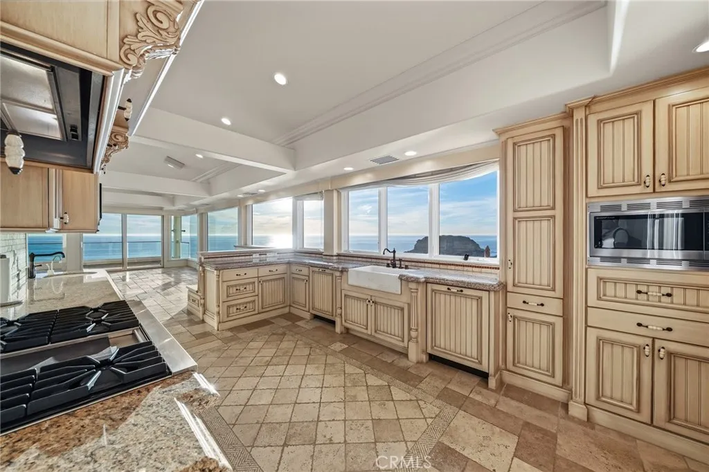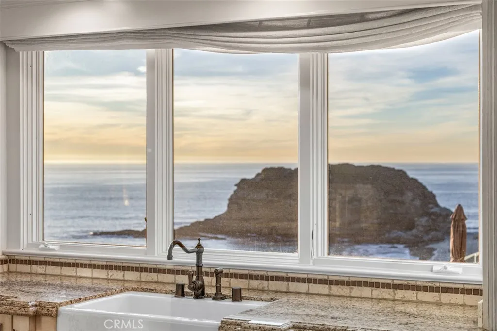 Never before available!!! Ocean-front masterpiece estate with over 5,000 sqft of custom luxury, offering unobstructed to die for view in the exclusive Three Arch Bay guard-gated community. Upscale architecture with front-to-back skylight and walls of massive glass, nestled just above the sand, and the soft waves below, offers a lifestyle everyone else can only dream of. Configured as either 6 spacious suites, each with its own full bath, or 4 full suites PLUS an ocean-view gym with a full bath and kitchenette, PLUS a Home-Theater with an extra-large 4K-HDR projection screen and exceptional sound system, minibar, kitchenette, and full bath. Indulging and totally secluded outdoor multi-jetted jacuzzi spa features the Pacific Ocean on one side and a large TV on the other, all part of a spacious ocean-front terrace. Newly renovated with state-of-the-art Smart Home features, including a voice-controlled shades system, a new outdoor BBQ and kitchenette, an upgraded indoor/outdoor sound system, new AC units, and new LED lighting in and out. Meticulous custom woodwork and decorative panels throughout the house, with built-in versatile cabinets, a combination of stone and durable hardwood flooring, and an airy vaulted ceiling rarely found in any ocean-front home. Captivating ocean-view is also available from the two distinct formal/informal dining areas and even from the connected kitchen, equipped with top-grade all DUAL appliances, separate beverage cooling drawers, adjacent large pantry, and custom cabinets. Up to 6 parking spaces on-site, including a 2-car garage with a convenie