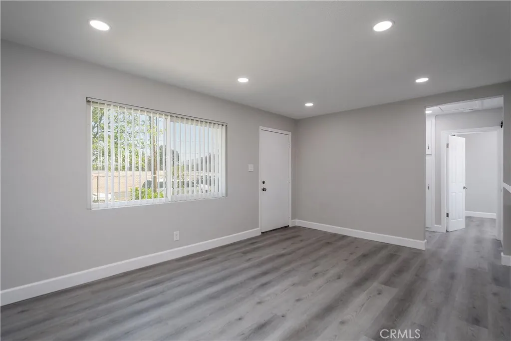 Welcome to this stunning 2-bedroom, 1-bath end unit available for lease. Fully remodeled just three years ago, this home blends modern style with everyday comfort. Fresh interior paint and abundant natural light create a bright, inviting atmosphere the moment you walk in. The open-concept living area features new wood-laminate flooring, recessed lighting, and a spacious layout perfect for relaxing or entertaining. The upgraded kitchen offers sleek quartz countertops, a decorative tile backsplash, stainless steel stove and hood, and ample cabinetry for storage. Both bedrooms are generously sized, providing comfortable retreats with plenty of privacy. The upgraded bathroom showcases modern fixtures and contemporary finishes. The home is also equipped with ductless AC and heating in living room, and wall AC in one bedroom, ensuring efficient climate control year-round. A standout convenience is the in-garage laundry hookups, giving you the ease of doing laundry on your own schedule. Additionally, this unit has only one shared wall between the garages and no one above or below you. Parking is effortless with your private 1-car garage plus an additional designated parking space located just steps from your front door. The gated community features a beautifully maintained grassy area, ideal for relaxing on a sunny day. Situated in a convenient location, youll enjoy close proximity to shopping, dining, parks, the downtown district, and youre just a 5-minute drive to Riverside Community College. Major highways and public transportation are minutes away, making commuting a breeze. C