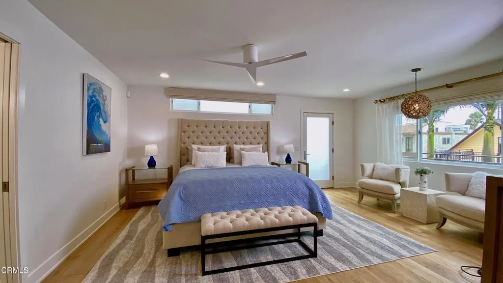 Discover the epitome of seaside luxury with this exquisite Silver Strand beach house, just steps from the sand. Three bedrooms, including a king-sized and two queen-sized beds, this tri-level oasis spans nearly 2,100 square feet. Immerse yourself in the coastal lifestyle with an impressive rooftop lounge perfect for watching the sunset over the ocean. Every detail within this dwelling is carefully curated, featuring designer furniture that complements the house's aesthetic perfectly. The open floor plan is a masterpiece of design, radiating a beachy-chic ambiance through a neutral color palette. Situated just steps from the flawless Silver Strand beach and adjacent to a sand volleyball court, this home offers breathtaking views of the ocean at sunrise and sunset. Indulge in a variety of coastal activities, such as surfing, fishing, kayaking, swimming, boogie boarding, jet skiing, and leisurely beach walks. Explore the charming town, complete with coastal bike paths, nearby restaurants, hotels, and attractions at the Channel Islands Harbor. Completely renovated in 2018 and a thoughtful refurnishing in 2020. Built in 1981, this 2,085 square foot home spans multiple levels. The lower level comprises two bedrooms, one bath, a den with a pull-out queen sofa bed, and an expansive side yard with an outdoor shower. Ascend to the upper level to find a spacious living room with a queen-sized pullout sofa, a chef's dream kitchen with Wolf appliances, a Sub-Zero refrigerator, custom shelving, beautiful shaker cabinets, and Carrera marble counters. The warm and inviting primary bedroom,