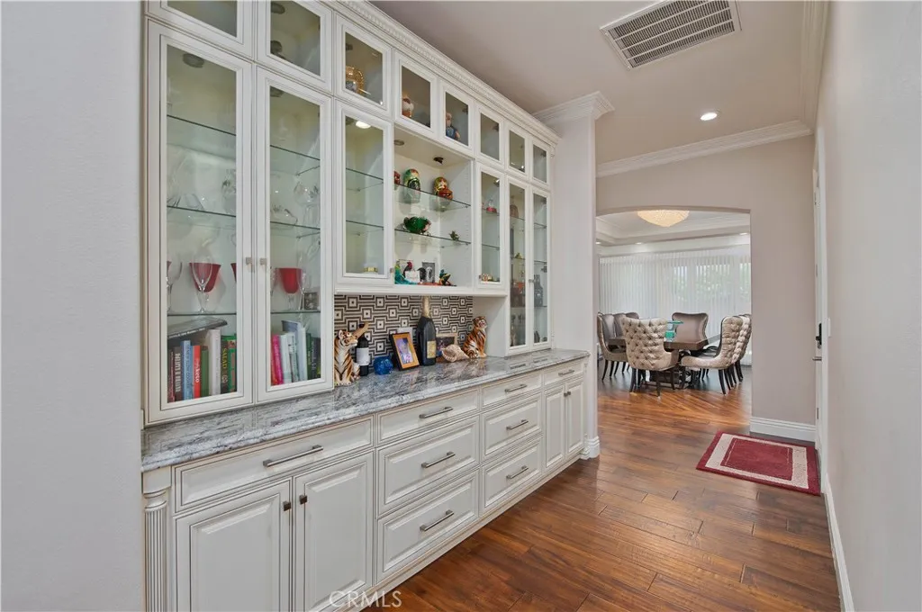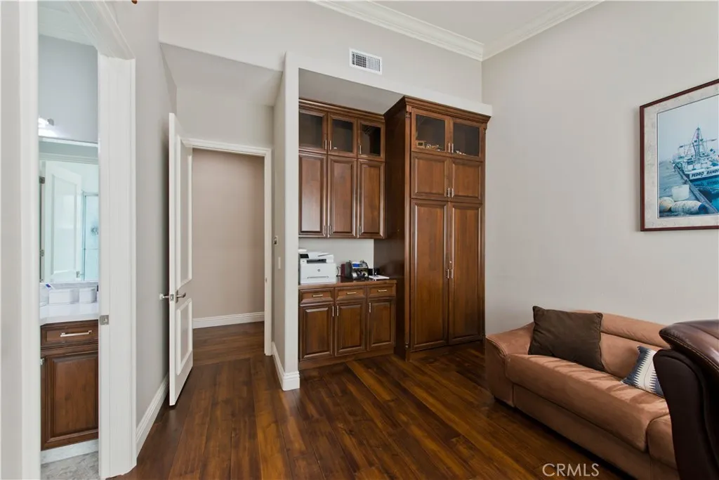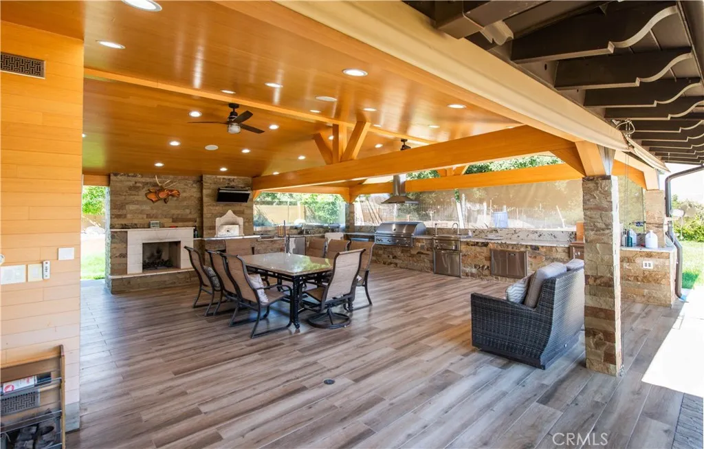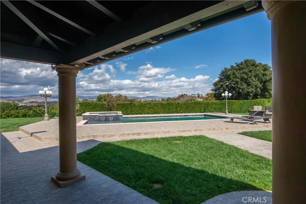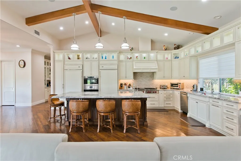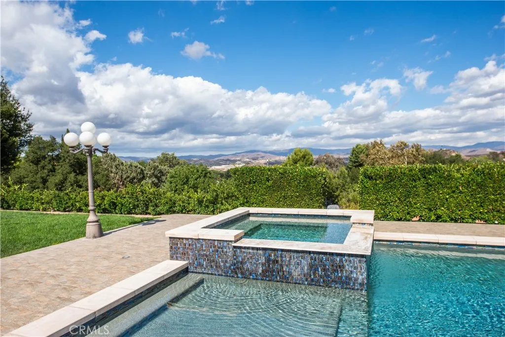 Experience refined California living in this beautifully appointed and rare 5-bedroom single-story home located in the highly sought-after gated Sand Canyon community. You'll be in the upper level main house on a 2.6-acre view lothalf on a lower level ideal for horses, a vineyard, or an orchardthis estate offers exceptional space and versatility. A gated courtyard entry leads to a formal living room with sweeping mountain views and a spacious family room with high ceilings, hardwood floors, a brick fireplace, and French doors to the backyard. The kitchen features double islands, pendant lighting, a bay-window breakfast area, and a walk-in pantry, with a butlers pantry connecting to the dining room. The primary suite includes a sitting area, fireplace, mountain views, and two walk-in closets. Outside, enjoy a serene backyard with a sparkling pool, expansive patio, and multiple lounge areasideal for relaxation and outdoor gatherings. A 4-car garage and full vinyl fencing complete the property.