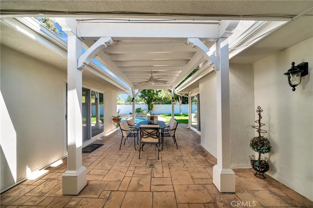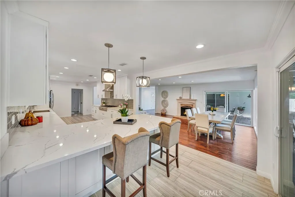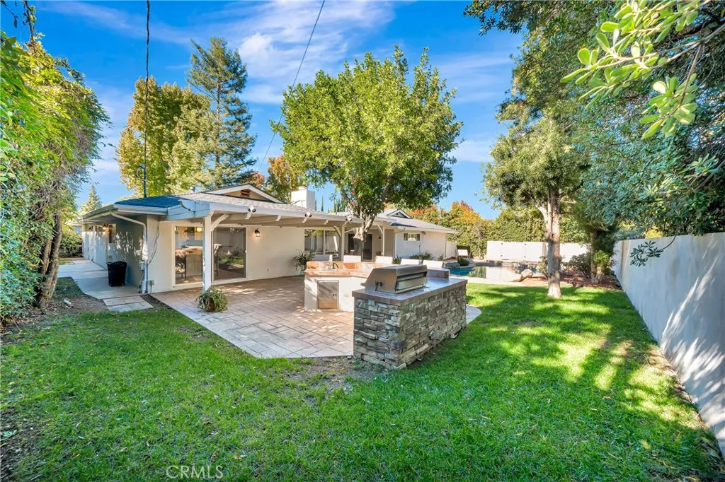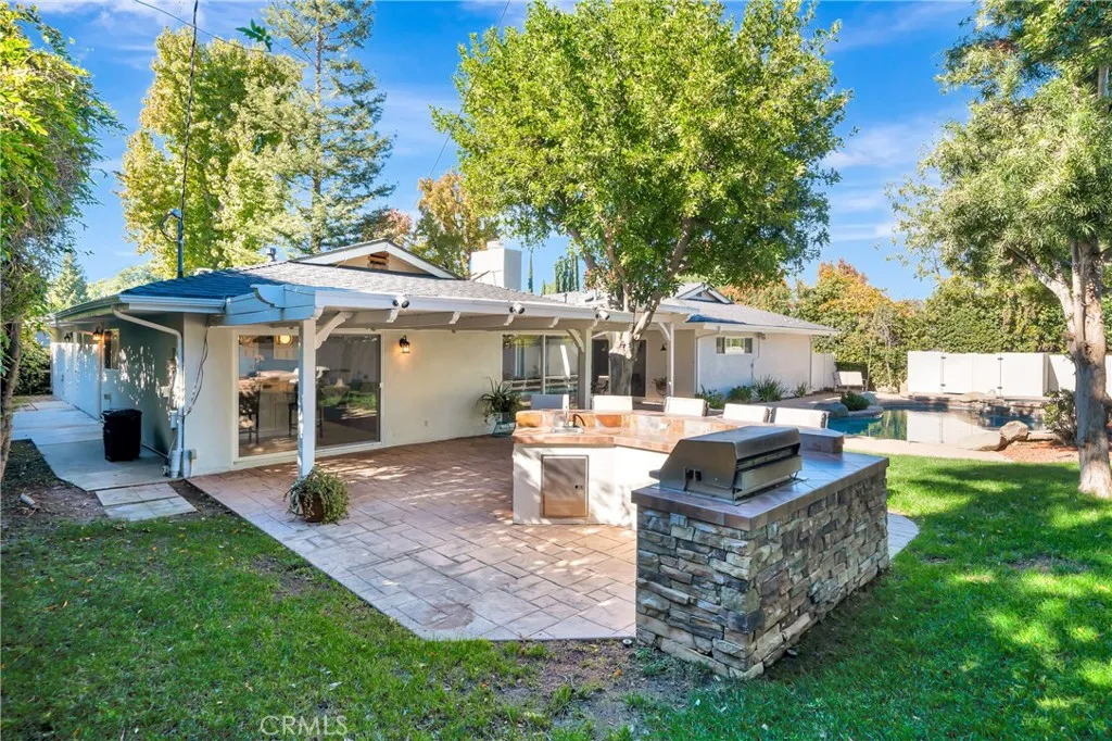IMPECCABLE ONE STORY, WOODLAND HILLS POOL HOME!!! This gorgeous oasis is turn-key and stunning. Featuring fresh paint both inside and out, wood floors, newer windows and sliding glass doors, remodeled bathrooms, a renovated chef's kitchen boasting quartz counter tops, newer cabinetry and appliances. A gorgeous breakfast bar overlooking both the living room and fantastic backyard. Find 4 spacious bedrooms including an oversized primary suite with a walk-in closet, a great family room (which can be used as an optional 5th bedroom!). This home is light and bright, boasting an open concept vibe throughout. Outside find an entertainer's yard, built-in bbq area, multiple covered patios, swimming pool, spa, natural grass and plenty of lounge areas all around. This home features a designated laundry room, 2 car attached garage, tankless water heater+++ Located walking distance from places of worship, supermarkets and more.