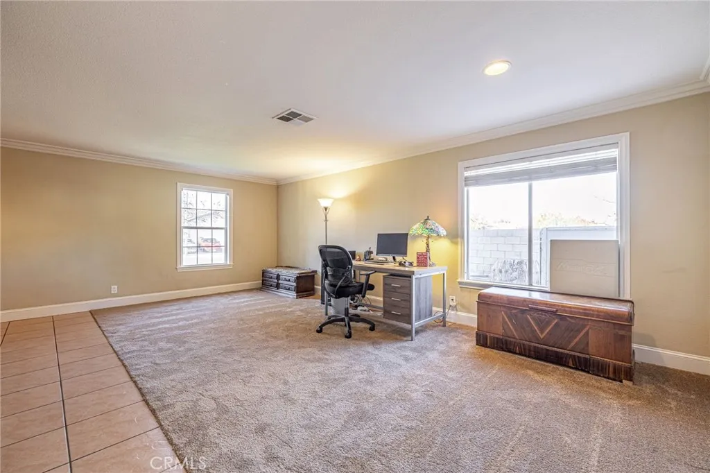 This well-maintained four-bedroom, three-bath home sits proudly on a corner lot with gated RV access. Inside, fresh interior painting and new carpeting pair with durable ceramic tile floors. The inviting floor plan flows seamlessly from an open kitchen with tile counter tops, pantry and updated appliances to a spacious great room with a fireplace, plus a handy indoor laundry room with shelving. The bedrooms are located upstairs and the secondary bedrooms share a full bathroom. The primary bedrooms is a large space with attached bathroom that has dual sink cabinets, separated soaking tub and shower with vanity, and walk in closet space. Outside, enjoy an in-ground pool, spa, and full-length covered patio-move-in ready. Near shopping, gas and freeway access.
