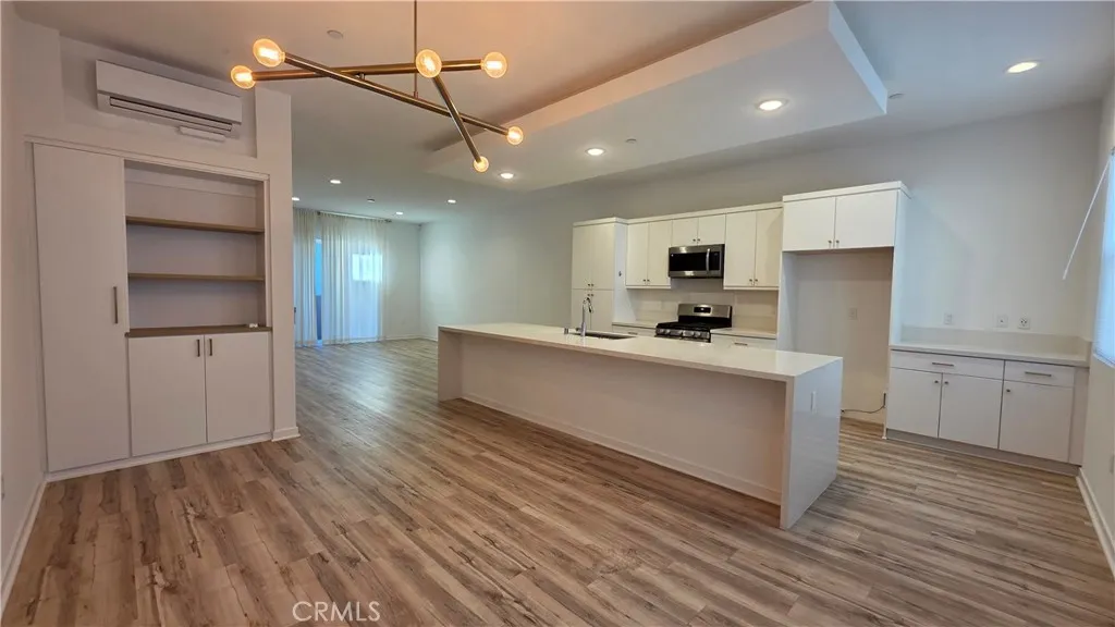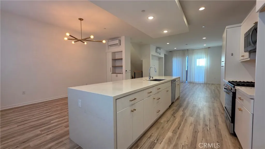Set within the sought-after West Village community by Trumark Homes, this thoughtfully designed townhome offers a blend of modern style and flexible living across 2,245 square feet. With four bedrooms, four bathrooms, and an attached two-car garage, the layout is as functional as it is inviting. The home makes a strong impression upon entry with a floating wood staircase and sleek contemporary railing. The entry level features a private bedroom with an en-suite bath, providing an ideal setup for guests or multigenerational living. The heart of the home is the main level, where a clean-lined kitchen anchors the space. Highlights include a generous island with seating, crisp white cabinetry, quartz countertops, stainless steel appliances, and a farmhouse sink. The kitchen flows seamlessly into a living area designed for both comfort and entertaining, featuring a large sliding door that opens to a private balcony. The top floor houses the primary suite and additional bedrooms, offering flexibility for a home office, media room, or gym. The primary retreat includes a private patio, a spacious walk-in closet, and a dual-vanity bathroom. Additional features include: Recessed lighting throughout, Two outdoor balconies, Individually controlled mini-split heating and cooling systems in each room, Solar panels, Water softener and Tesla Charger installed in the garage. Conveniently located near freeways, shopping, dining, markets, and top-rated schools, the community also offers a well-maintained park complete with a playground and splash pad. This exceptional property perfectly combi