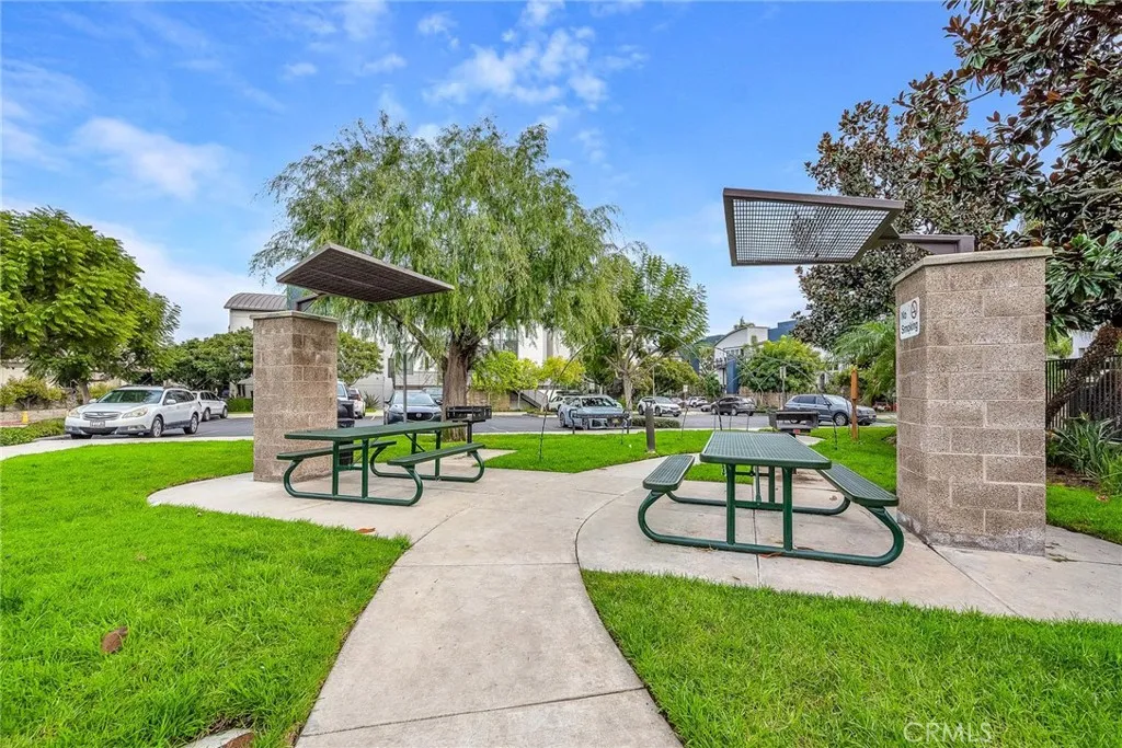 Discover this beautifully designed 2-bedroom, 2-bath townhome in the highly desirable Fusion community, ideally located on the border of Manhattan Beach. Newly painted with fresh baseboards throughout and featuring new luxury vinyl flooring in the living room and bedrooms, this home effortlessly combines modern updates with a bright, open-concept layout perfect for comfortable everyday living and stylish entertaining. Step outside to the oversized private patio, ideal for al fresco dining, morning coffee, or soaking up the Southern California sun. The thoughtfully appointed kitchen features a center island, stainless steel appliances, and seamless flow into the dining area, cozy living room, and built-in office nook, perfect for remote work, study, or creative pursuits. The downstairs guest suite offers versatility with its full bathroom, accommodating visitors or roommates. An in-unit washer and dryer add convenience to daily life. Upstairs, the spacious primary suite provides a serene retreat, complete with a generous bedroom and private en-suite bathroom. Residents of Fusion enjoy resort-style amenities, including a sparkling pool, basketball court, and a landscaped grassy promenade perfect for evening strolls or outdoor relaxation all within a secure gated community. Just minutes from the beach, premier shopping, dining, and freeway access, this home offers the ultimate South Bay lifestyle.