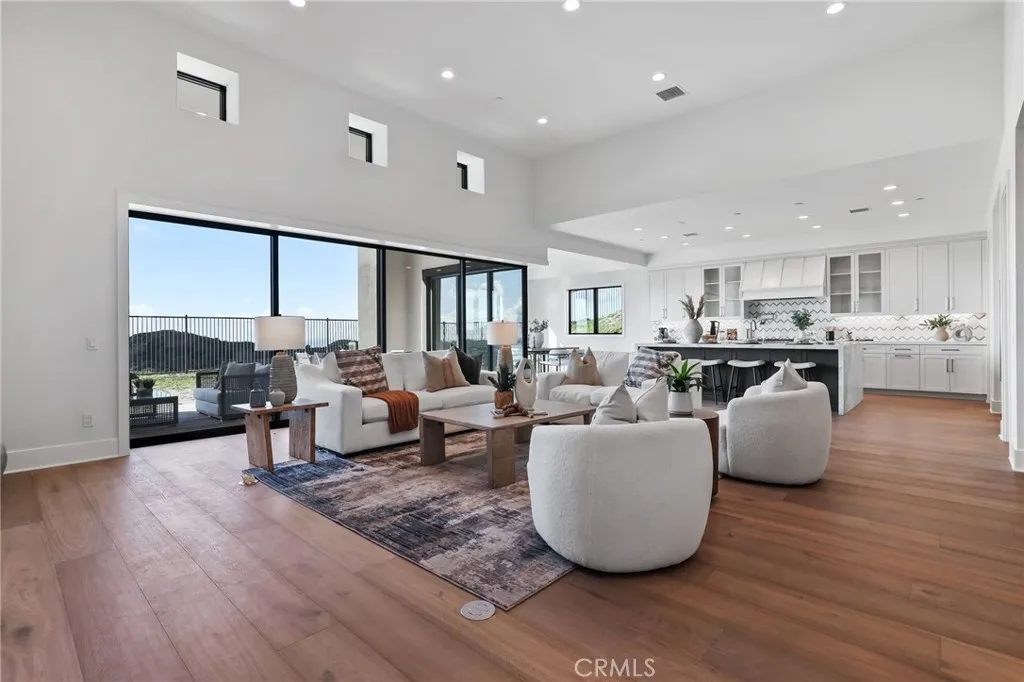 NEW CONSTRUCTION SINGLE STORY LIVING - SUNSET & CITY LIGHT VIEWS- END OF CUL-DE-SAC LOCATION, 17,000 sf+ POOL SIZED LOT within GATED Saddle Crest community PLUS attached ADU with great room, mini kitchen private bedroom, bathroom and walk-in closet. Finished with thousands in designer selected finishes, this price includes folding glass doors, fireplace in great room, upgraded cabinets, WATERFALL ISLAND with Calcutta Umber quartz plus designer selected countertops and surrounds in each bath. Hardwood floors in the great room, kitchen, office and primary bedroom, gorgeous custom Calcutta Umber and wood entry floors, and upgraded tile flooring in bathrooms and oversize laundry room. Semi-custom construction with the highest standard of living for the discerning home buyer, like casement windows, his and her closets in the primary room. The amazing gourmet kitchen with designer selected split finish kitchen full box with self closing cabinets, island with sink, breakfast bar, quartz countertops with gorgeous marble and tile backsplash, two dishwashers, 72 inch refrigerator, Wolf gas range and oven, pot filler, huge walk in pantry, plus a casual dining and formal dining room. The primary suite includes a huge, spa inspired shower & soaking tub plus two huge walk-in closets. This home has just completed construction and is a MUST SEE! Homesite 48 is perched on a hill with a large 17,000+ square foot yard is waiting for you to design your dream back yard landscaping, big enough for a pool and more. Saddle Crest is a gated community of only 65 luxury residences off of Santiago Can