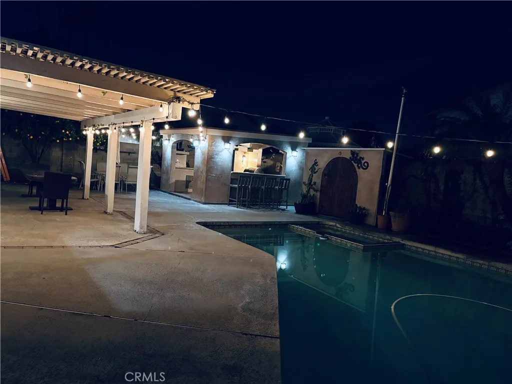 Welcome to this beautifully designed 4-bedroom, 2.5-bath home that blends comfort, space, and effortless indoor-outdoor living. High ceilings and an open floor plan create a bright, airy atmosphere throughout the main living areasideal for both everyday living and entertaining. A formal dining area is highlighted by a new drop-down light fixture, while the kitchen features new countertops and overlooks the inviting family room. The spacious primary suite provides a relaxing retreat with a walk-in closet and private bath. The warm and welcoming family room with a gas fireplace opens directly to the backyard, seamlessly extending the living space outdoors. Step outside to your private oasis featuring a sparkling pool and jacuzzi, perfect for relaxing or hosting guests. An outdoor kitchenette with refrigerator and sink enhances the space for effortless entertaining. Additional exterior amenities include a pool storage room, workshop, and dedicated storage area, offering exceptional functionality. A 3-car garage provides ample parking and storage. Conveniently located near the 22 and 55 freeway, this home offers the perfect balance of space, style, and resort-like amenitiesready to welcome its next owners home.