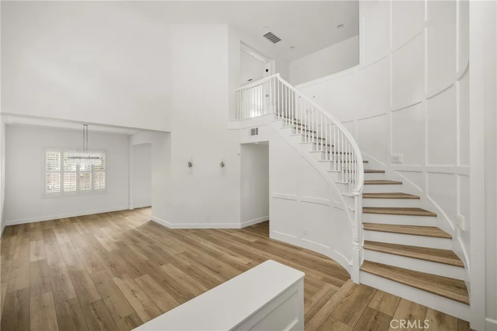 Beautiful FULLY REMODELED home in GATED El Dorado in Tustin Ranch! One of the BEST COMMUNITIES to live, offering walking distance to TOP RANKED schools, parks & hiking trails as well as association amenities that include pool/spa/tot lot/greenbelt & BBQs. This LARGE 4 BEDROOM PLUS HUGE BONUS ROOM (Could be 5th bedroom) home is truly amazing. METICULOUSLY UPGRADED this year with CUSTOM FEATURES THROUGHOUT. NEW LUXURY VINYL PLANK FLOORING, crisp white walls & wide baseboards, paneled shaker doors with custom black hardware, new custom lighting and custom paneled walls enhance the elevated look of this home. The kitchen is breathtaking with a HUGE QUARTZITE CENTER ISLAND with seating for 6, CUSTOM designed white Shaker cabinetry & stained white oak island, Kitchen Aide professional gas range/oven, French door refrigerator, dishwasher & microwave drawer. Custom glass lit cabinet doors, custom built-in pantry coffee bar & Zellige Moroccan tile backsplash complete the elegant kitchen. The family room opens to the kitchen and has a custom paneled entertainment wall with fireplace as well as storage cabinets & shelving with lighting. The DOWNSTAIRS BEDROOM OR OFFICE has a large closet with organizer & is directly across from the bath with uniquely tiled shower, vanity and lighting. The primary suite is quite large and has a retreat with shimmering fireclay tiled fireplace, built in cabinets and makes a great office or exercise space. The primary bath offers a relaxing free standing soaking tub with woven chandelier, a frameless glass walk-in shower with modern tile, modern vanity a