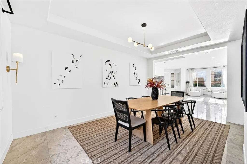 MODERN, UPGRADED, and ideally located, welcome to 43901 Running Brook in desirable South Temecula. Tucked away on a quiet cul-de-sac, this beautifully maintained home offers the perfect balance of style and location. The property also features a spacious 3-car garage, providing ample parking and storage in a highly desirable South Temecula location. The home features a bright, open floor plan with a modern, upgraded interior designed for effortless everyday living and entertaining. The downstairs showcases beautiful porcelain tile flooring, adding durability, elegance, and a clean contemporary look throughout the main living areas. The chefs kitchen is a true highlight, featuring white shaker cabinetry, quartz countertops, a large waterfall center island, stainless steel appliances, open shelving, and recessed lighting, all flowing seamlessly to the backyard and ideal for indoor-outdoor living. The stylish dining room includes a tray ceiling, modern statement lighting, and custom wall sconces, while a built-in bar and beverage area with wine storage adds both function and character, making it perfect for hosting and everyday dining. The primary bedroom serves as a true retreat with a tray ceiling, abundant natural light, and a spacious, calming layout designed for comfort. Upstairs, the massive loft offers incredible flexibility and can be used as a media room, game room, home office, gym, or additional living space, making this home perfect for a large or growing family. Step outside to a beautifully well-maintained backyard with no rear neighbors, providing added privacy