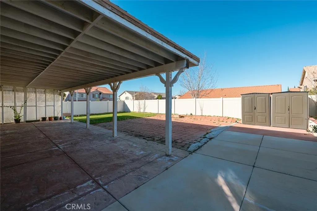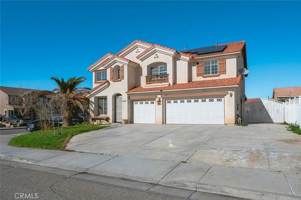 Welcome to this charming corner-lot home situated on a generous 7,857 sq ft lot, offering 5 bedrooms and 3 full bathrooms. Built in 2004, the home features a desirable first-floor bedroom and full bath ideal for guests, extended family or home office. Step inside to a light-filled living room that flows seamlessly into the spacious kitchen and adjacent dining area, creating an inviting space for everyday living and entertaining. Upstairs, a wide hallway leads to four generously sized bedrooms, offering ample space for the entire family. The property provides RV parking within a secure iron-gated area, plus a concrete section for additional vehicle parking. Fresh interior paint and brand-new flooring throughout enhance the homes bright, airy feel. Additional highlights include a prewired security camera system, FULLY PAID-OFF SOLAR PANELS, and a dual-zone HVAC system with separate units for the first and second floors. The low-maintenance backyard is finished with concrete and brick, featuring two outdoor storage sheds and a large covered patio that is perfect for entertaining guests. Conveniently located just minutes from the water park, shopping centers, and schools, this home offers comfort, functionality, and an exceptional lifestyle.