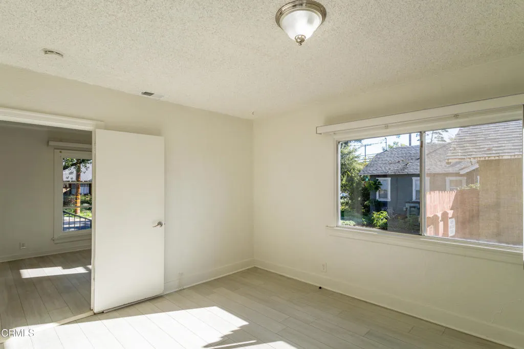 Located in Pasadena's storied Bungalow Heaven Historic District, this charming 2-bedroom, 1-bath Craftsman bungalow offers timeless character paired with thoughtful updates. From the moment you arrive, classic curb appeal and a welcoming front entry set the tone for this special home. Inside, wood-like laminate flooring flows throughout. The living room is anchored by original built-ins framing an oversized mantel and decorative fireplace, enhanced with an electric Duraflame insert. A large picture window fills the space with natural light and looks out to the front yard. An arched opening leads to the dining room, where another picture window continues the bright, open feel. The updated galley kitchen features a tray ceiling with recessed lighting, quartz countertops, updated cabinetry, a gas range and oven with hood, and a refrigerator/freezer, combining style and function. Beyond the kitchen, a dedicated laundry room offers washer and dryer hookups, and a dual built-in desk area with quartz countertops, perfect for work or a creative space. A rear door opens to a private patio and grassy yard area, ideal for relaxing or entertaining. The first bedroom is accessed off the living room and includes a walk-in closet. Attached to this bedroom is the full bathroom with a tub and shower combination, single-sink vanity, and recessed lighting. The first bedroom connects to the second bedroom and features a large mirrored sliding-door closet and a corner set of windows that bring in abundant natural light. Additional highlights include central air conditioning and a single-car gar