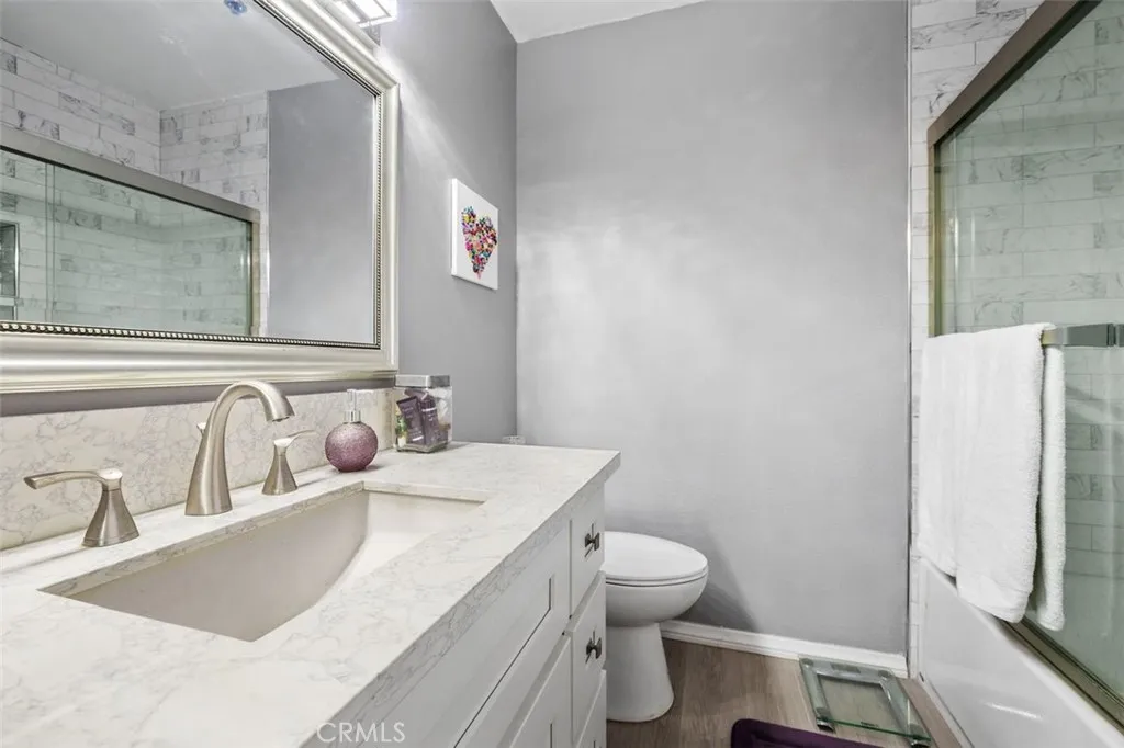 Welcome to Unit 239 at 4501 Cedros Avenue, a beautifully remodeled 2-bedroom, 2-bathroom residence offering 1,151 square feet of stylish living space in the heart of Sherman Oaks. Remodeled in 2020, this light and bright unit is filled with natural sunlight through large dual-pane windows, complemented by elegant plantation shutters throughout. The open living and dining areas create an inviting atmosphere ideal for both everyday living and entertaining. The modern kitchen features quartz countertops, classic subway tile backsplash, soft-closing cabinetry, and sleek Whirlpool appliances, blending timeless design with everyday functionality. The spacious primary suite offers a vanity dressing area and dual access to the primary bathroom, providing both privacy and convenience. Both bathrooms are thoughtfully updated with clean, contemporary finishes. Residents enjoy resort-style community amenities including a sparkling pool, fully equipped gym, and recreation room. Ideally located near shops, dining, and entertainment, this move-in-ready condo offers comfort, style, and convenience in one of Sherman Oaks most desirable locations.
