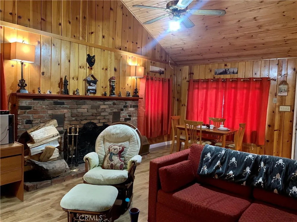 Price reduced! Best value in Big Bear move-in ready mountain cabin! Charming 2-bedroom, 1-bath ranch-style cabin featuring high vaulted ceilings, new flooring, and a bright open living space with a classic brick fireplace, perfect for cozy mountain evenings.Enjoy outdoor living with a large front deck and spacious patio, ideal for relaxing, entertaining, or soaking in the fresh mountain air. The property also includes two storage sheds for added convenience and parking for up to three cars. Located in a peaceful, pet-friendly neighborhood just minutes from Big Bear Lake, Snow Summit, Big Bear Snow Play, and The Village, offering easy access to year-round activities, dining, and shopping. With simple wall-unit heating and low-maintenance living, this home is perfect as a weekend getaway, full-time residence, or investment opportunity. Dont miss your chance to own a piece of Big Bear at an unbeatable price.