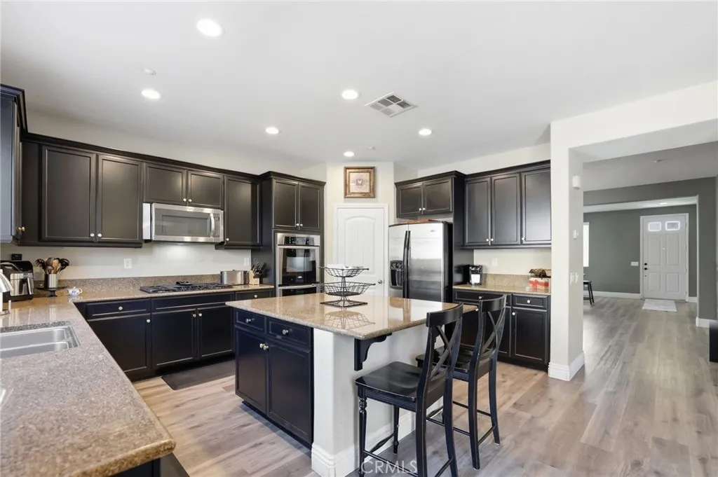 Welcome to this exceptional North Fontana Coyote Canyon pool home offering space upgrades and true pride of ownership. Featuring 4 bedrooms and 4 bathrooms this well appointed residence is designed for both everyday comfort and entertaining. The home showcases new flooring throughout and recently repainted cabinetry creating a fresh move in ready feel. The open and functional floor plan flows seamlessly while oversized windows bring in abundant natural light. Step outside to your private backyard oasis complete with a pool and spa perfect for relaxing or hosting gatherings year round. Energy efficiency and reliability are standout features with fully paid solar consisting of 42 panels and two Tesla Powerwalls which keep the home powered during outages. An EV charger is also installed offering added convenience for electric vehicle owners. Car enthusiasts and adventurers alike will appreciate the four car tandem garage with ceiling mounted storage racks plus RV parking with a side driveway. The primary suite features custom shelving in both walk in closets offering excellent storage and organization. A gun safe is also included. Located within one of the best school districts in Fontana this highly desirable North Fontana neighborhood is known for its strong sense of community. All holidays feel magical here especially the Fourth of July when neighbors come together in a festive atmosphere that feels like a true block party. This home combines functionality upgrades energy efficiency and lifestyle in one complete package. A rare opportunity to own a fully upgraded pool home